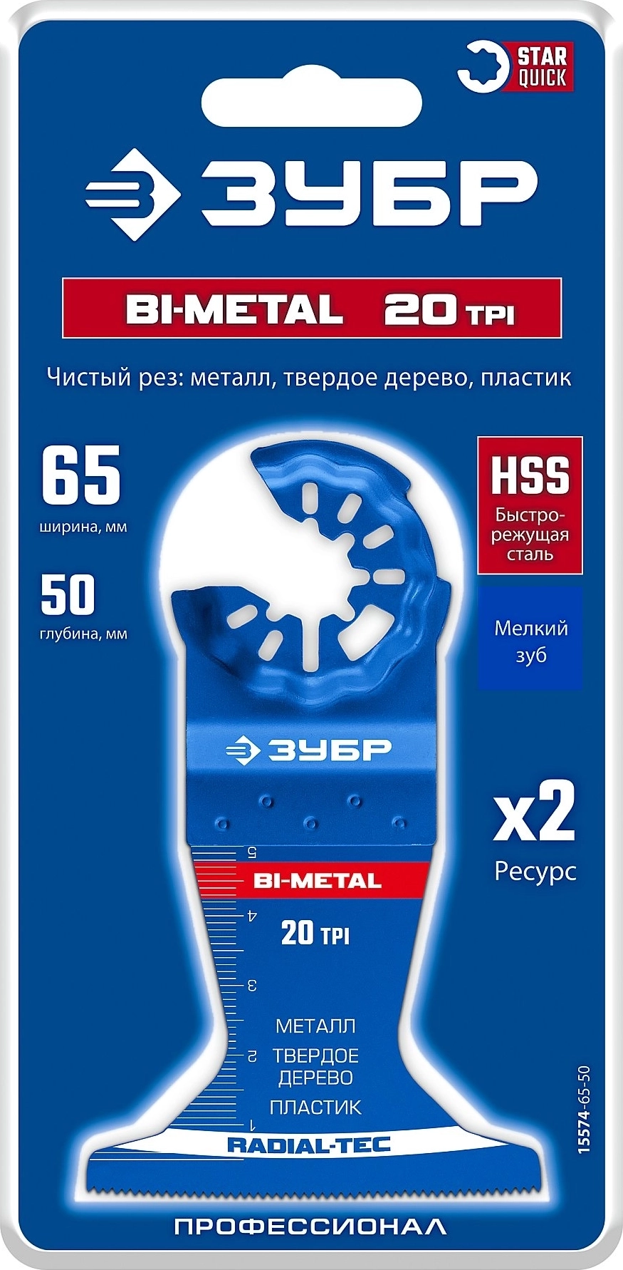 Полотно биметаллическое ЗУБР BIM 65x50 мм, 20TPI чистый рез