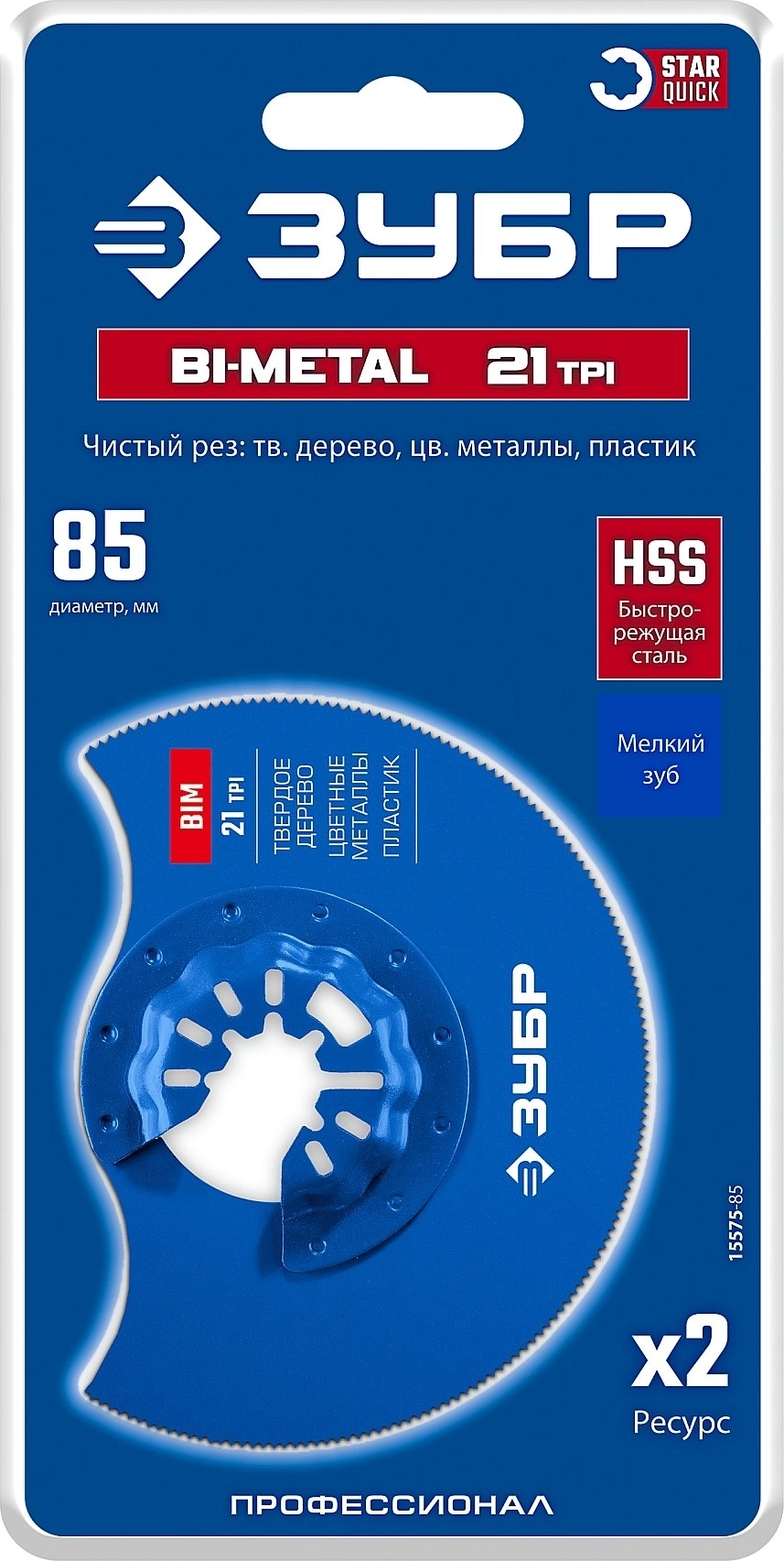 Полотно биметаллическое дисковое ЗУБР BIM Пластик d 85 мм, 21TPI , чистый рез