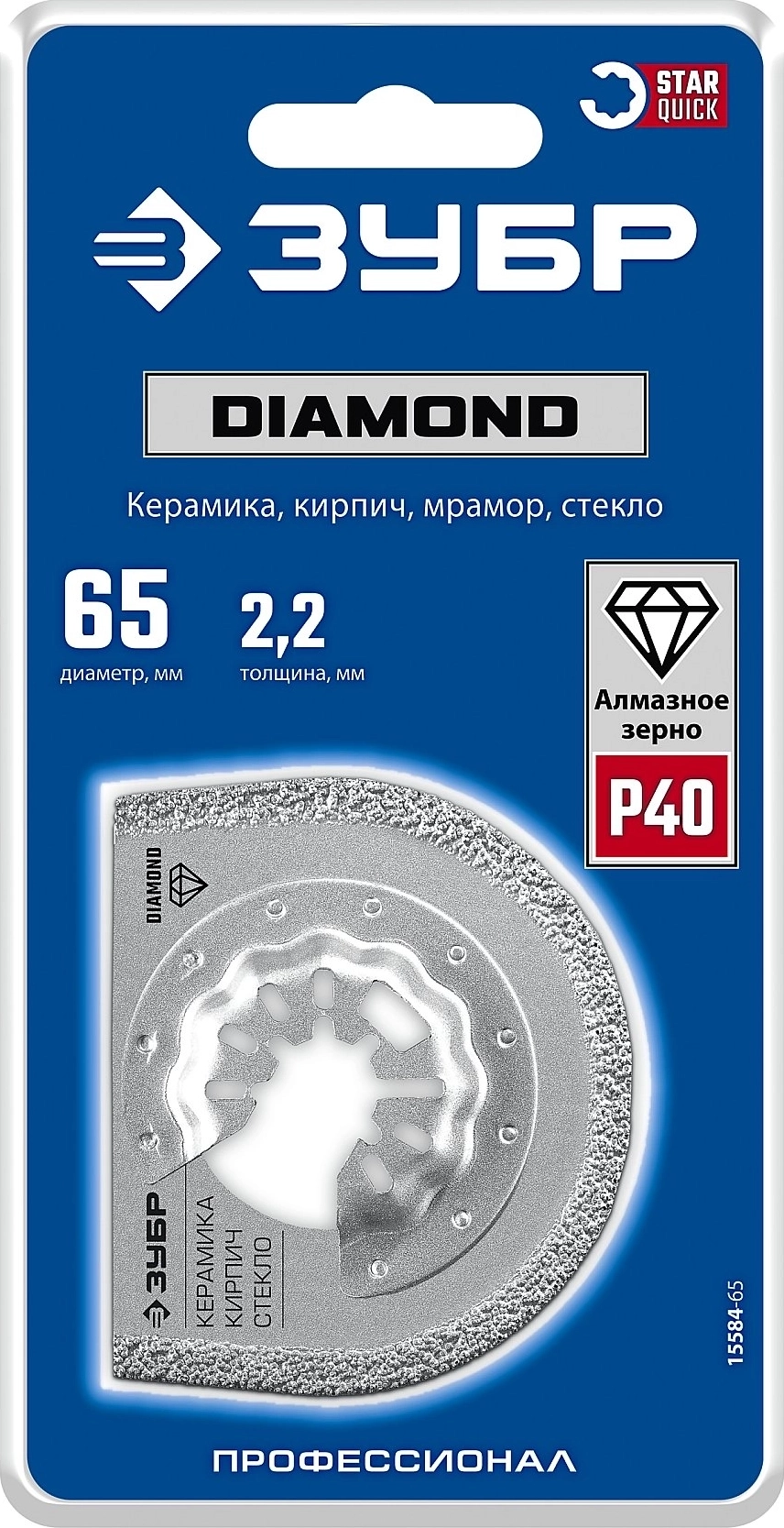 Полотно дисковое ЗУБР DIAMOND 65x2.2 мм с алмазным зерном Р40