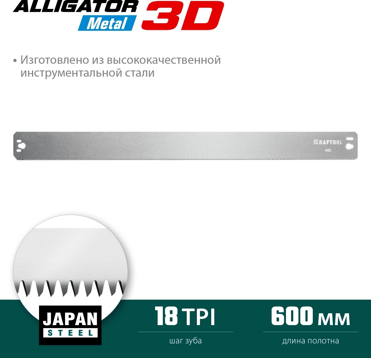 Полотно по металлу для прецизионного стусла KRAFTOOL Alligator 3D, 600 мм