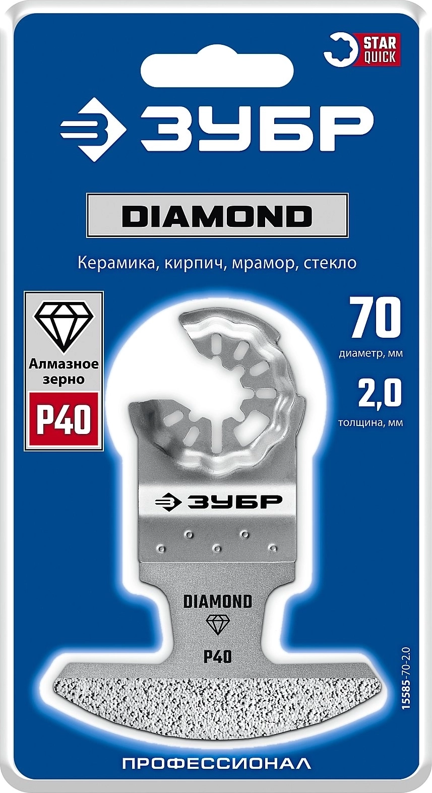 Полотно с алмазным зерном ЗУБР DIAMOND 70x2.0 мм Р40