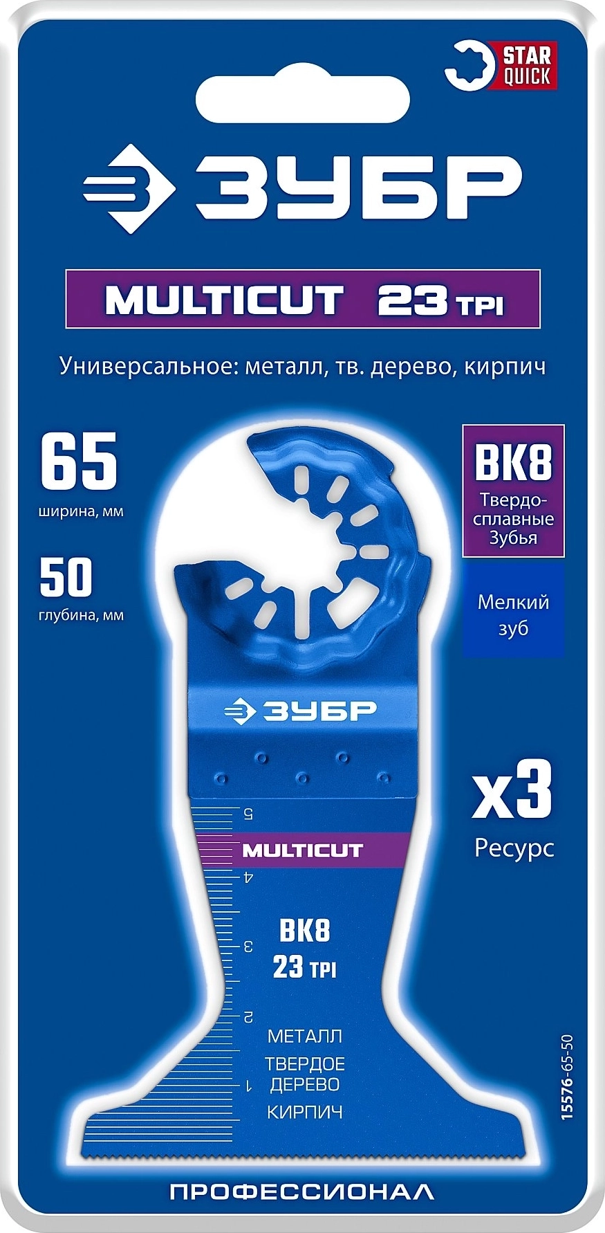 Полотно с твердосплавными зубьями ЗУБР MULTICUT ВК8 23TPI, 65x50 мм