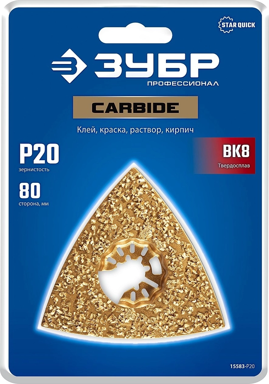 Полотно треугольное зачистное с твердосплавной крошкой ЗУБР CARBIDE ВК8 Р20, 80 мм