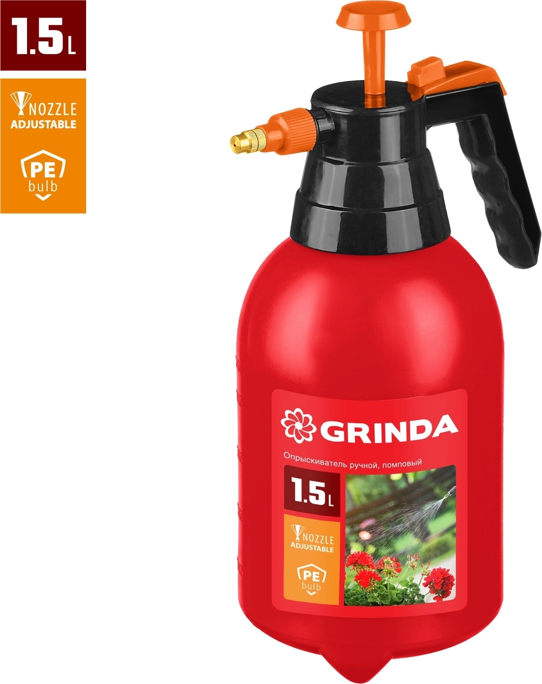 Помповый опрыскиватель GRINDA PS-1.5, объем 1.5 л, ручной, колба из высокопрочного полиэтилена