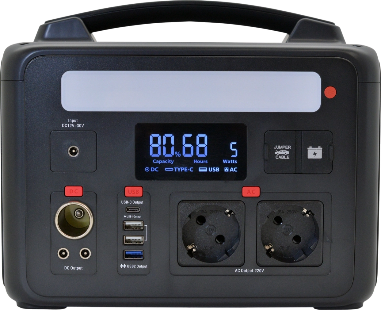 - Выход переменного тока: 2x AC 220V (600W/1200W), 50Hz чистый синусоидный сигнал