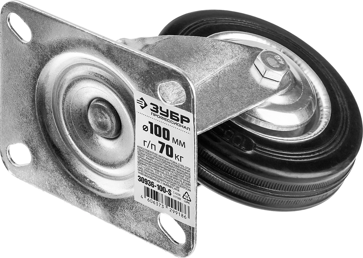 Поворотное колесо ЗУБР d 100 мм г/п 70 кг игольчатый подшипник резина/металл