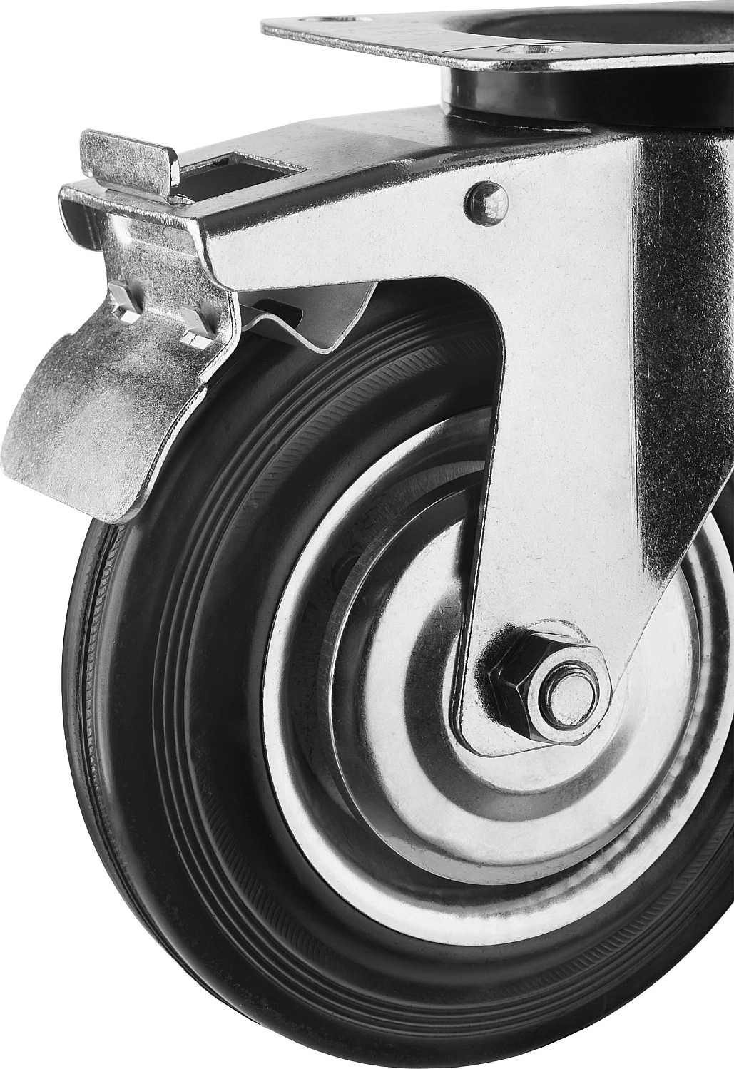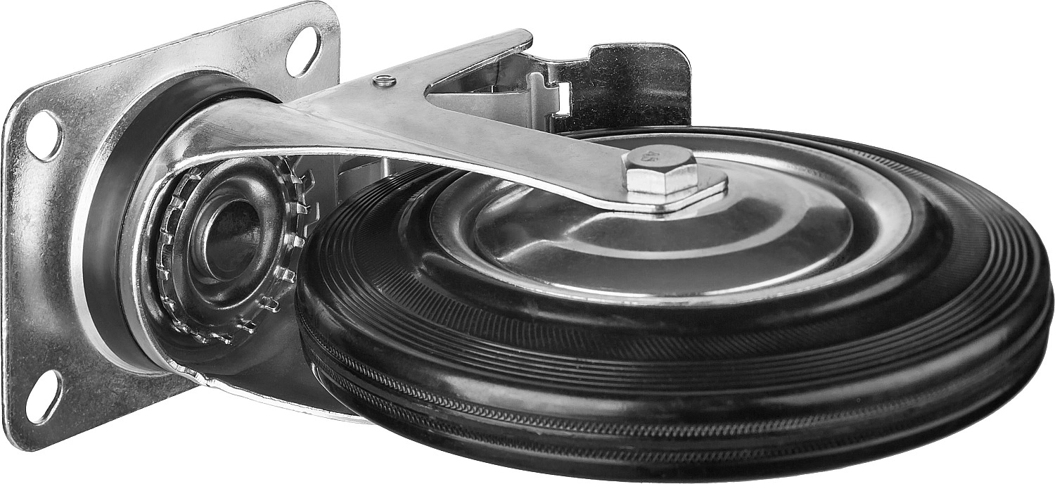 Поворотное колесо ЗУБР d 200 мм г/п 185 кг игольчатый подшипник резина/металл