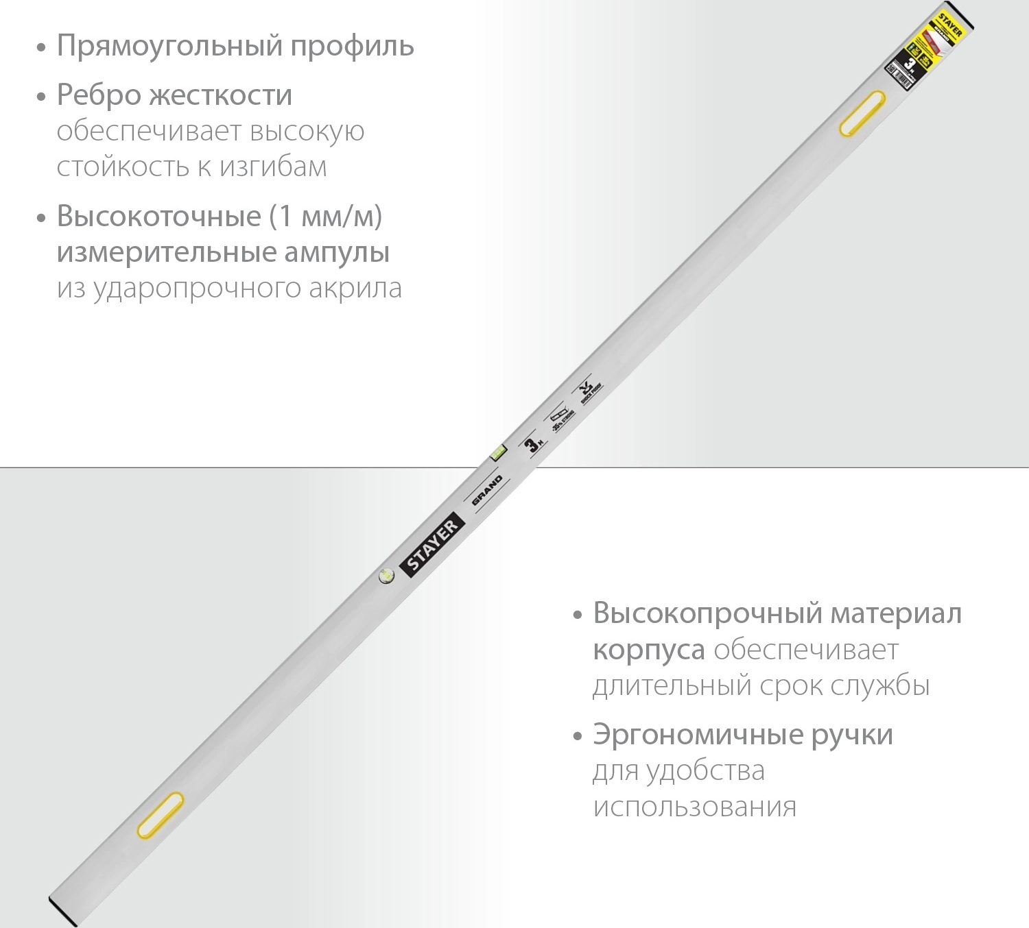 Правило с уровнем STAYER GRAND 3 м, точность 1 мм/м, 2 глазка