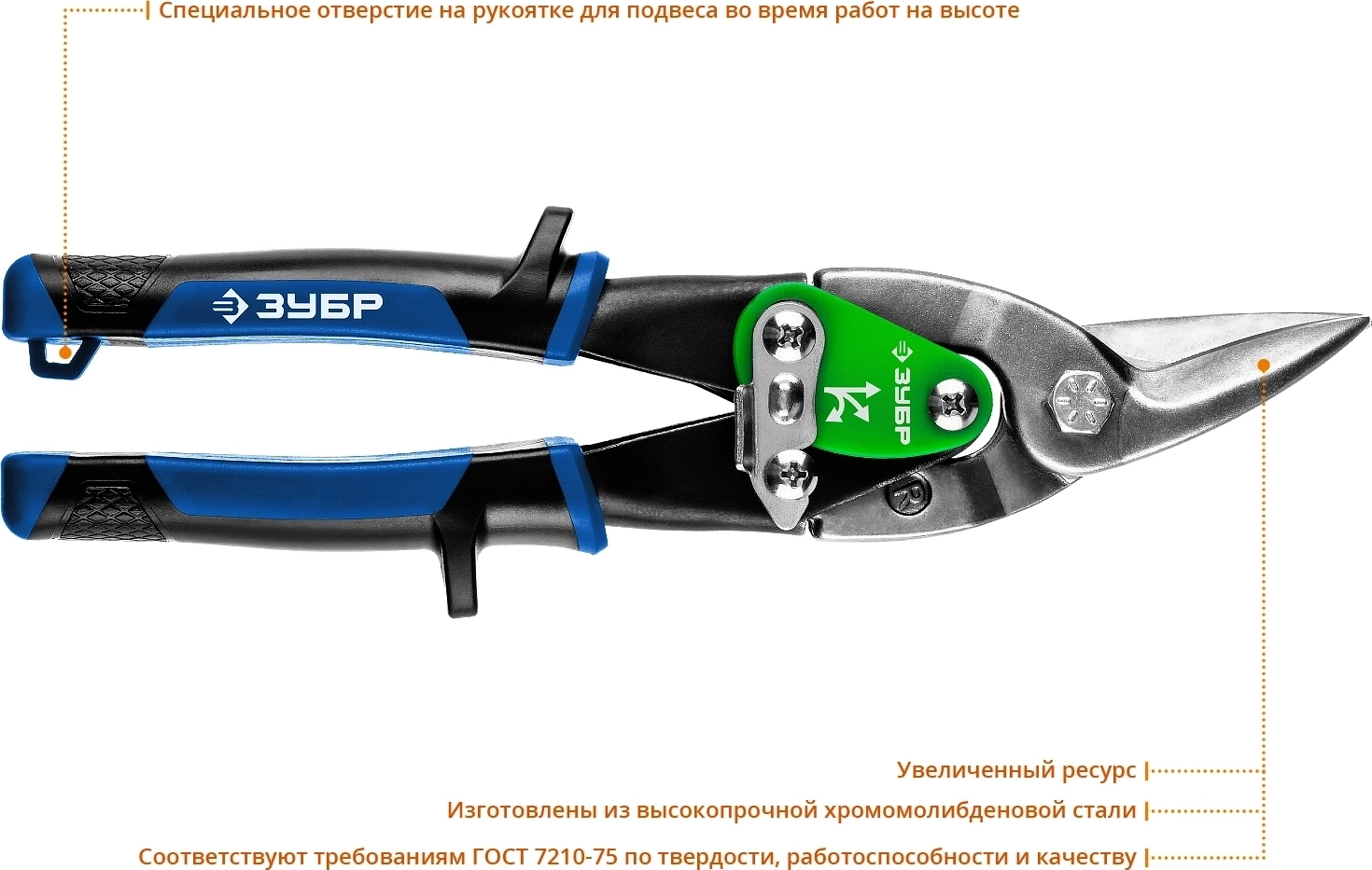 Правые ножницы по металлу ЗУБР 250 мм