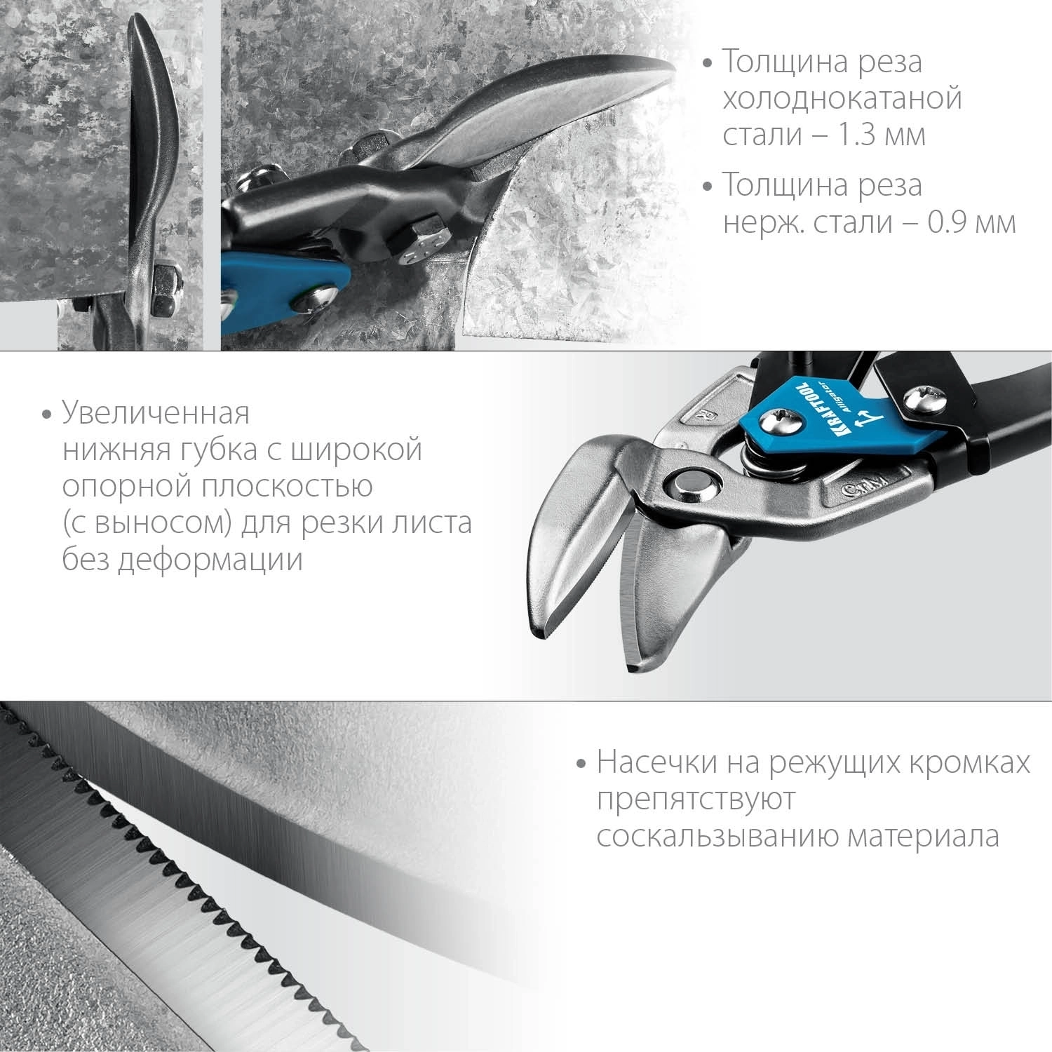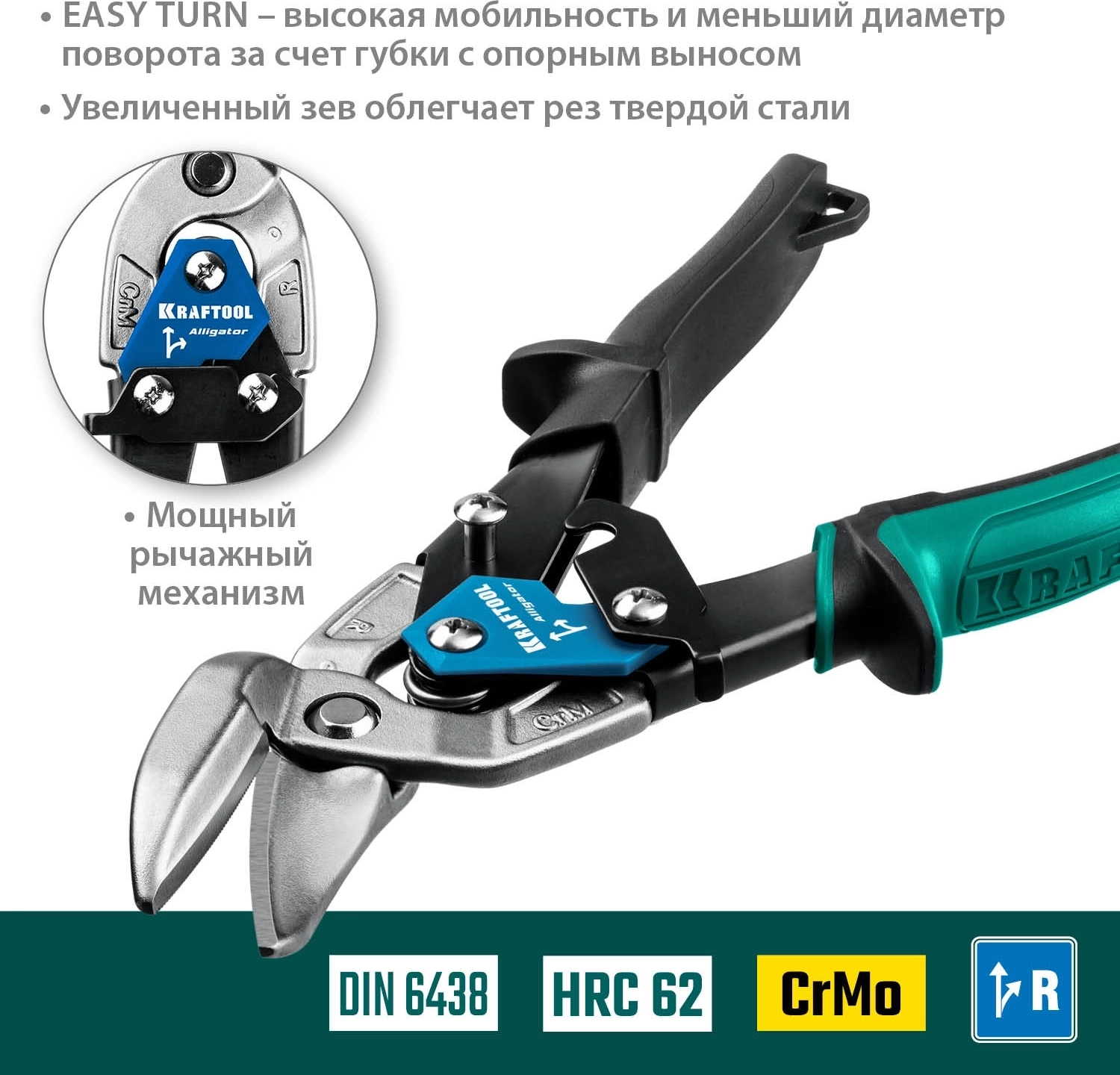 Правые усиленные ножницы по металлу с выносом KRAFTOOL Alligator, 250 мм
