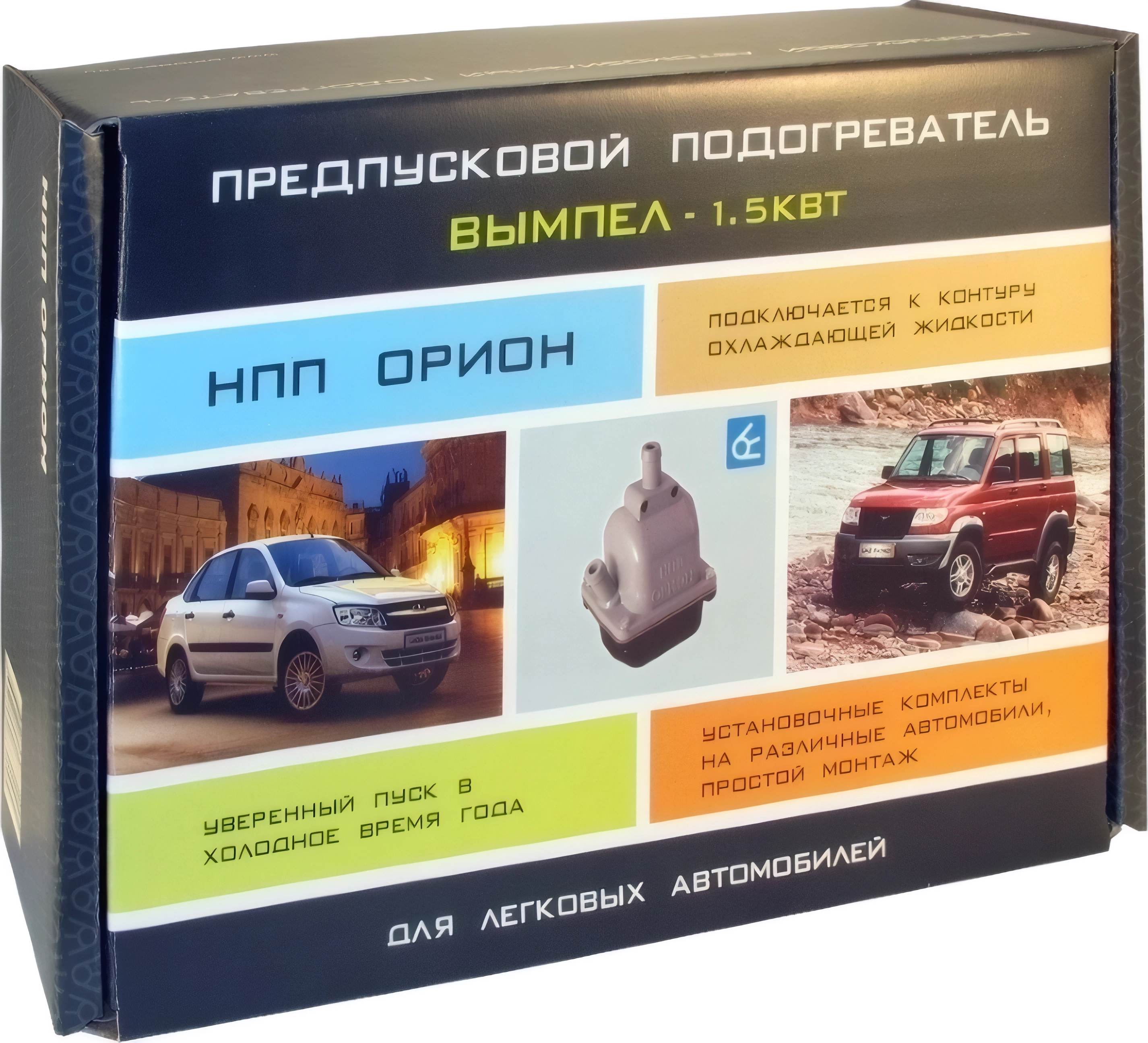Предпусковой подогреватель тосола Вымпел 27 (1,5 кВт) для УАЗ (c дв.4216,42130Н) подключение к сети 220 Вт, монтаж к контуру охлаждающей жидкости