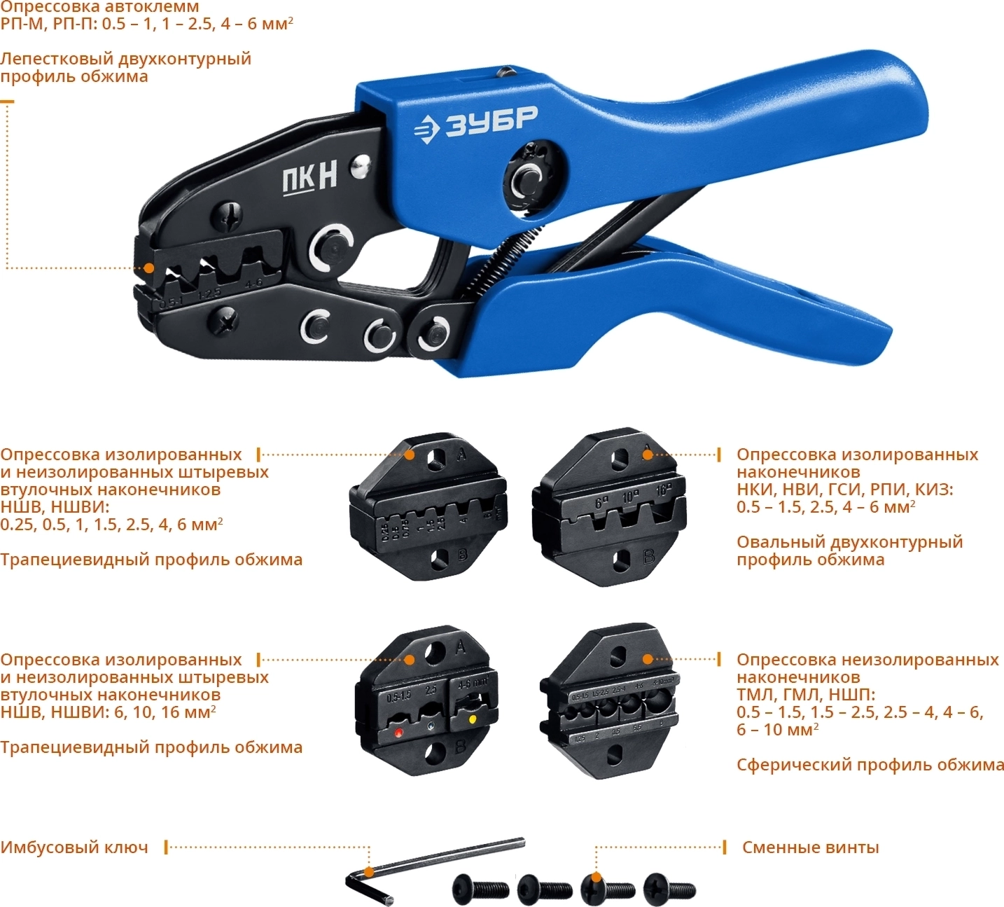 Пресс-клещи для кабельных наконечников ЗУБР ПК-Н 5 матриц в кейсе