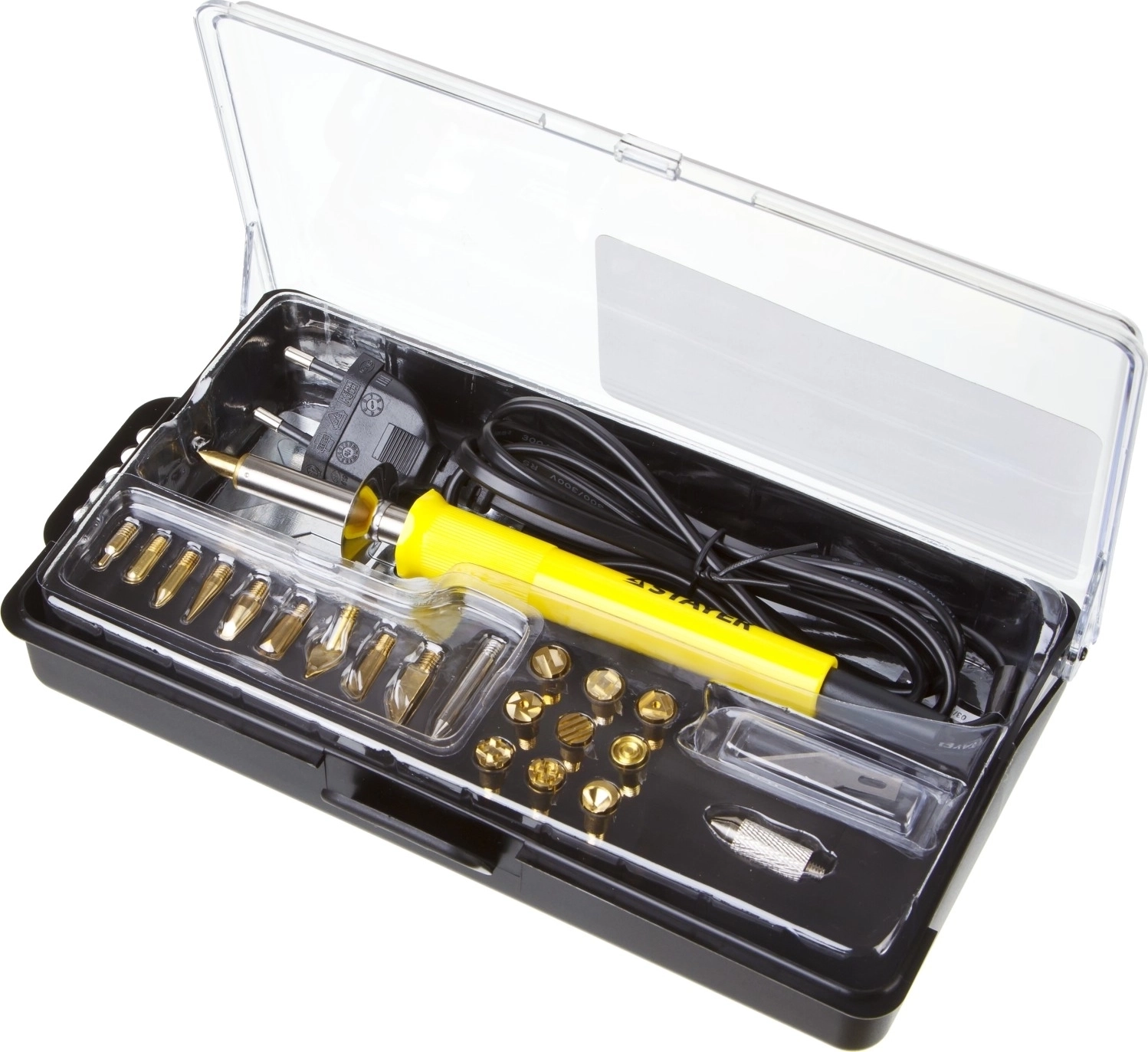 Прибор для выжигания Professional STAYER PROTerm 30 Вт 3 в 1 в наборе: 20 насадок в кейсе пайки и резки
