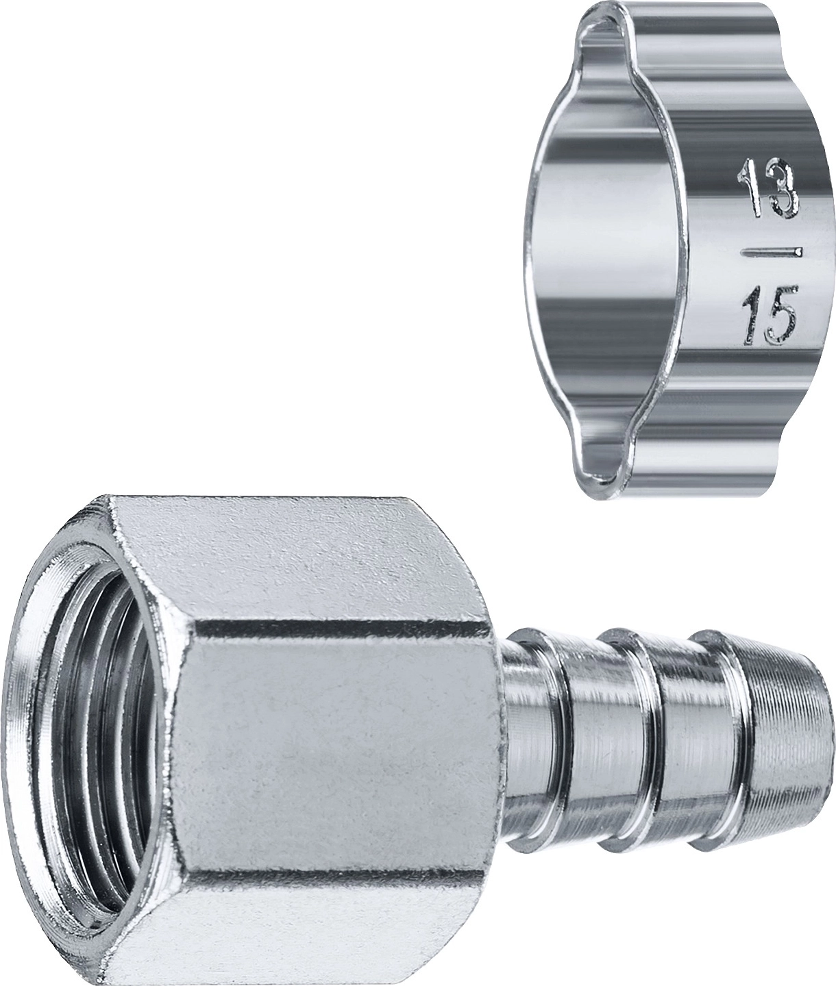 Переходник с обжимным хомутом штуцер ″елочка″ 10 мм - 3/8″F арт. 112376