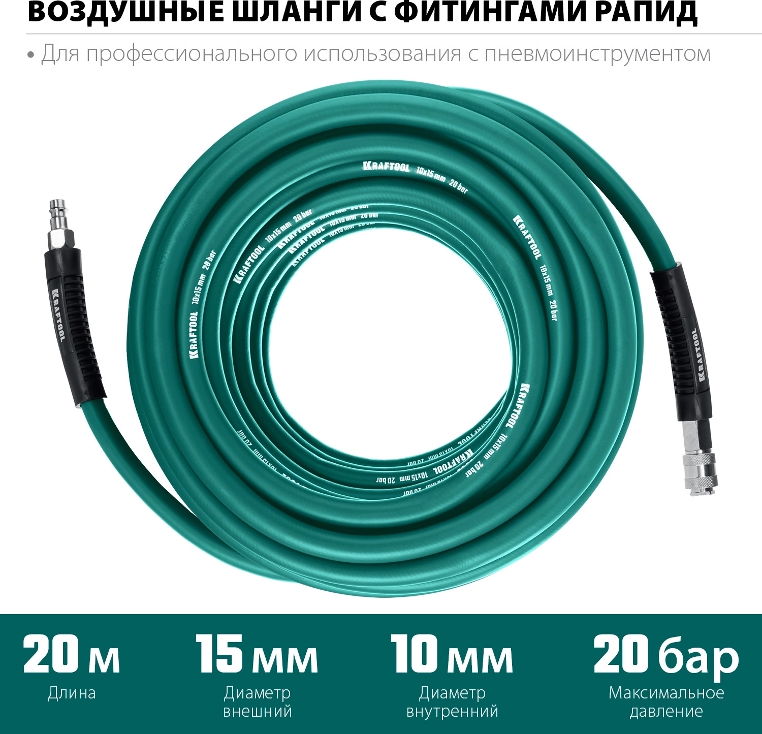 Воздушный шланг с поворотными фитингами рапид 20 м, 10 х1 5 мм, 20 бар арт. 112401