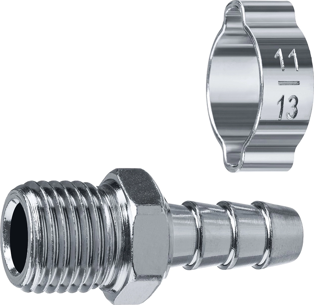 Переходник с обжимным хомутом штуцер ″елочка″ 10 мм - 3/8″M арт. 112380
