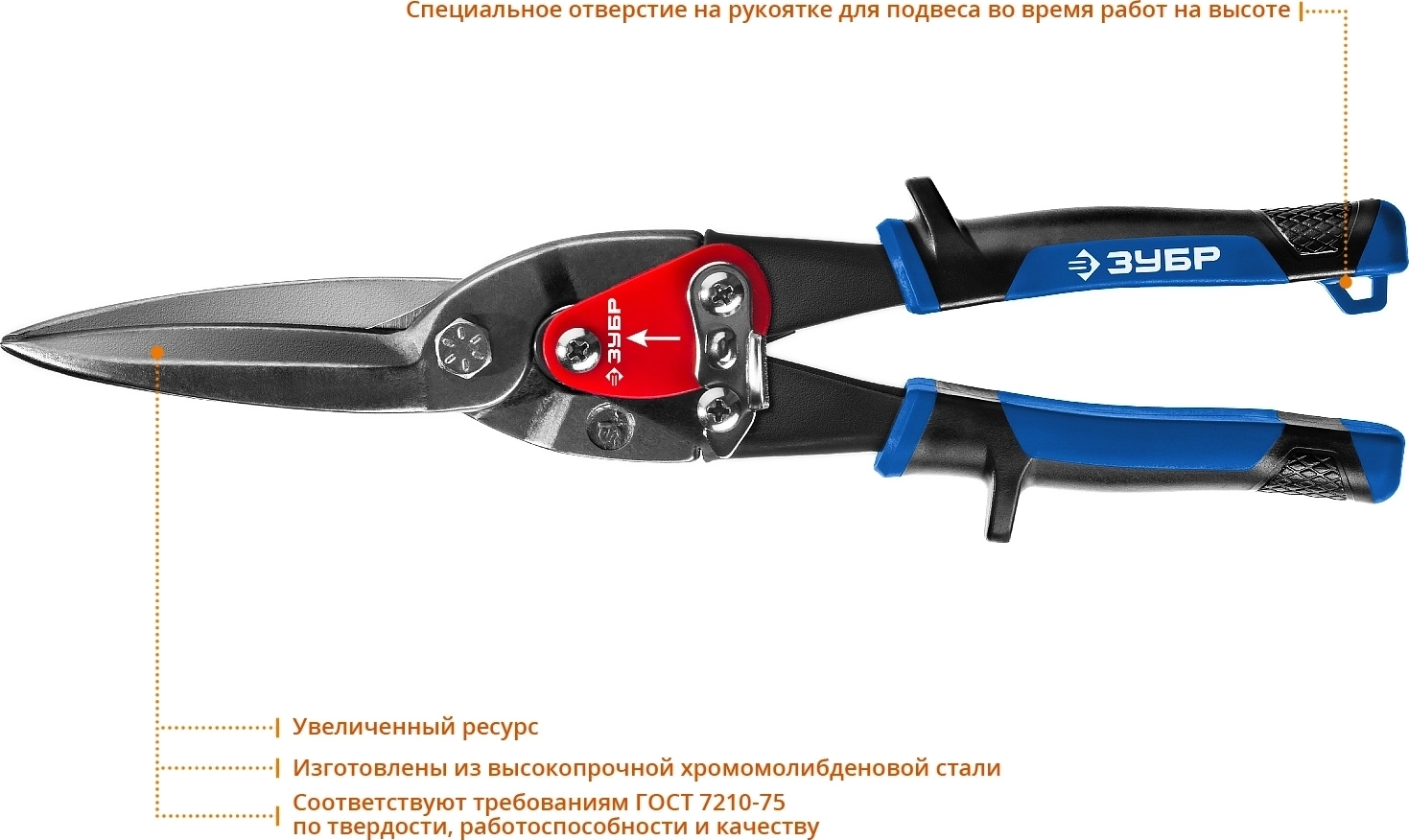 Прямые удлинённые ножницы по металлу ЗУБР 300 мм