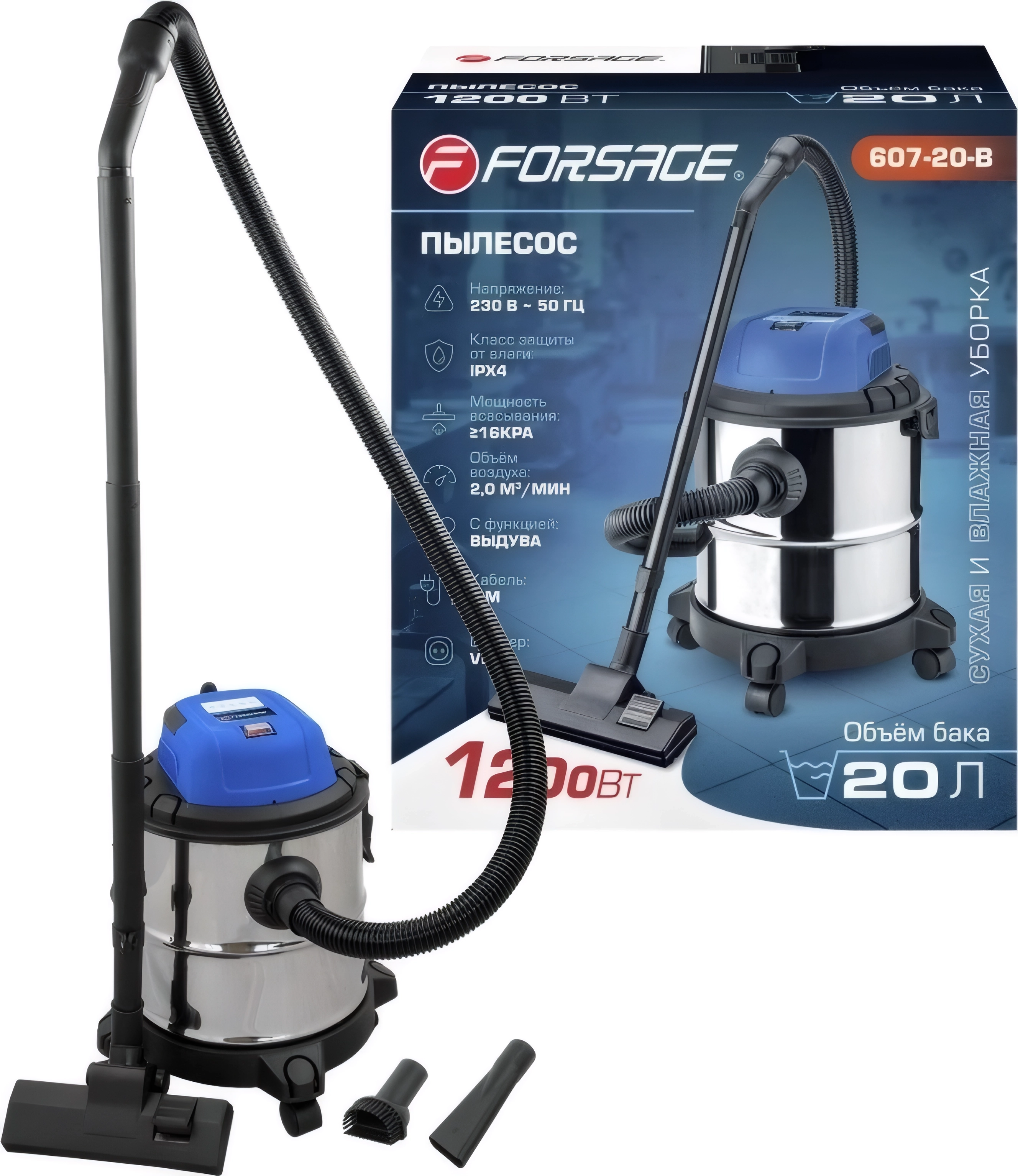 Пылесос для сухой и влажной уборки Forsage, 220В, 1.2кВт, объем 20л