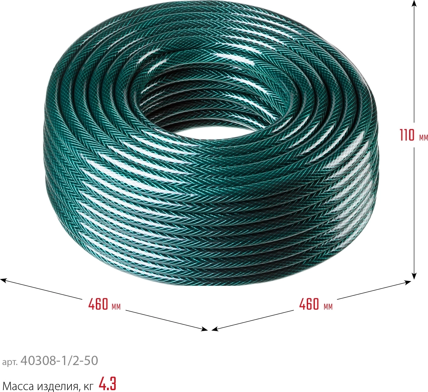 Поливочный шланг РОСТОК 1/2″, 50 м, 15 атм, трёхслойный, армированный