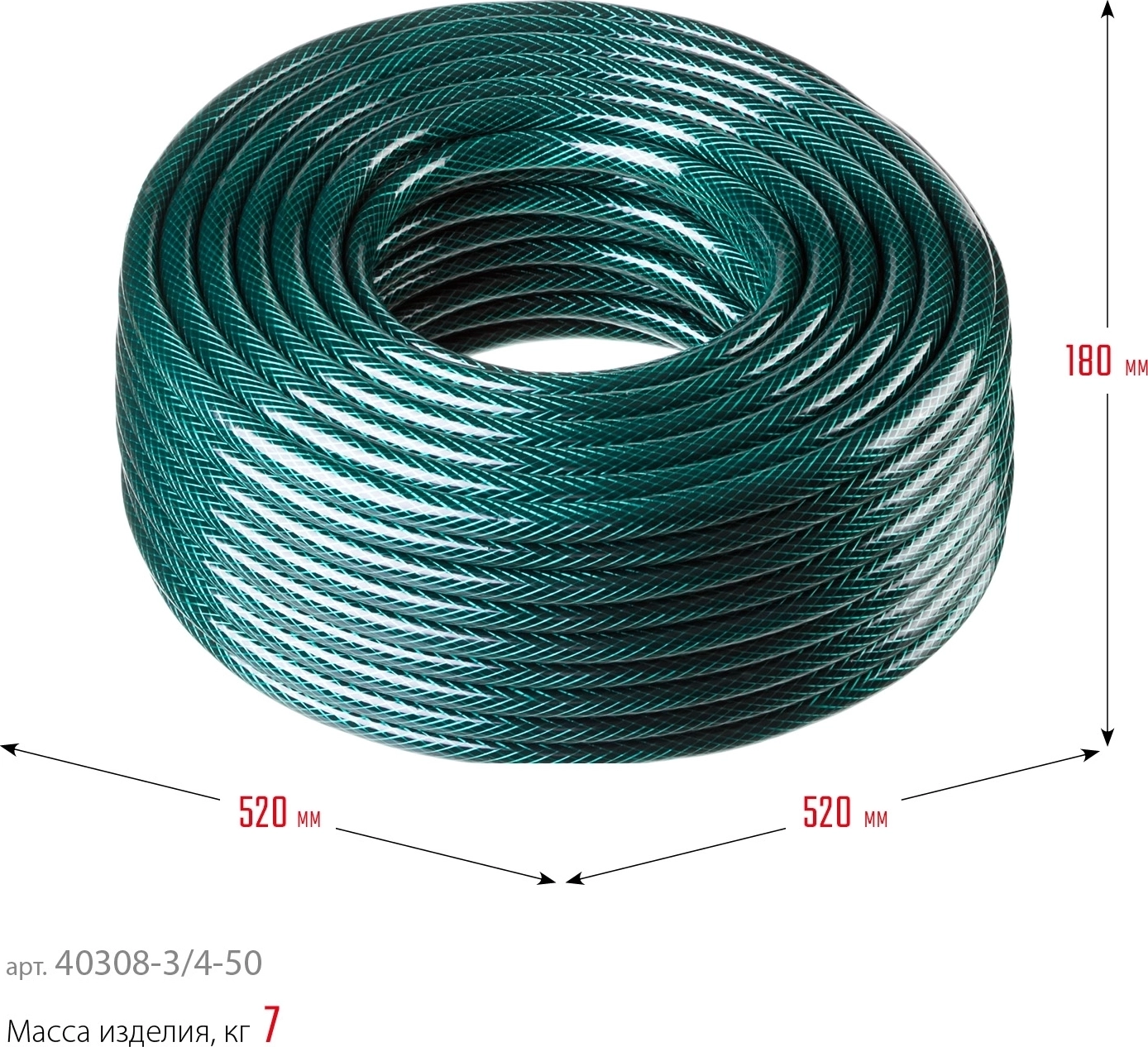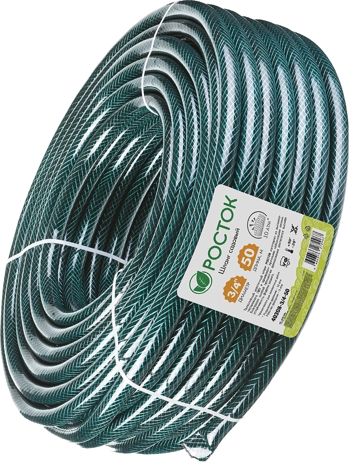 Поливочный шланг РОСТОК 3/4″, 50 м, 10 атм, трёхслойный, армированный