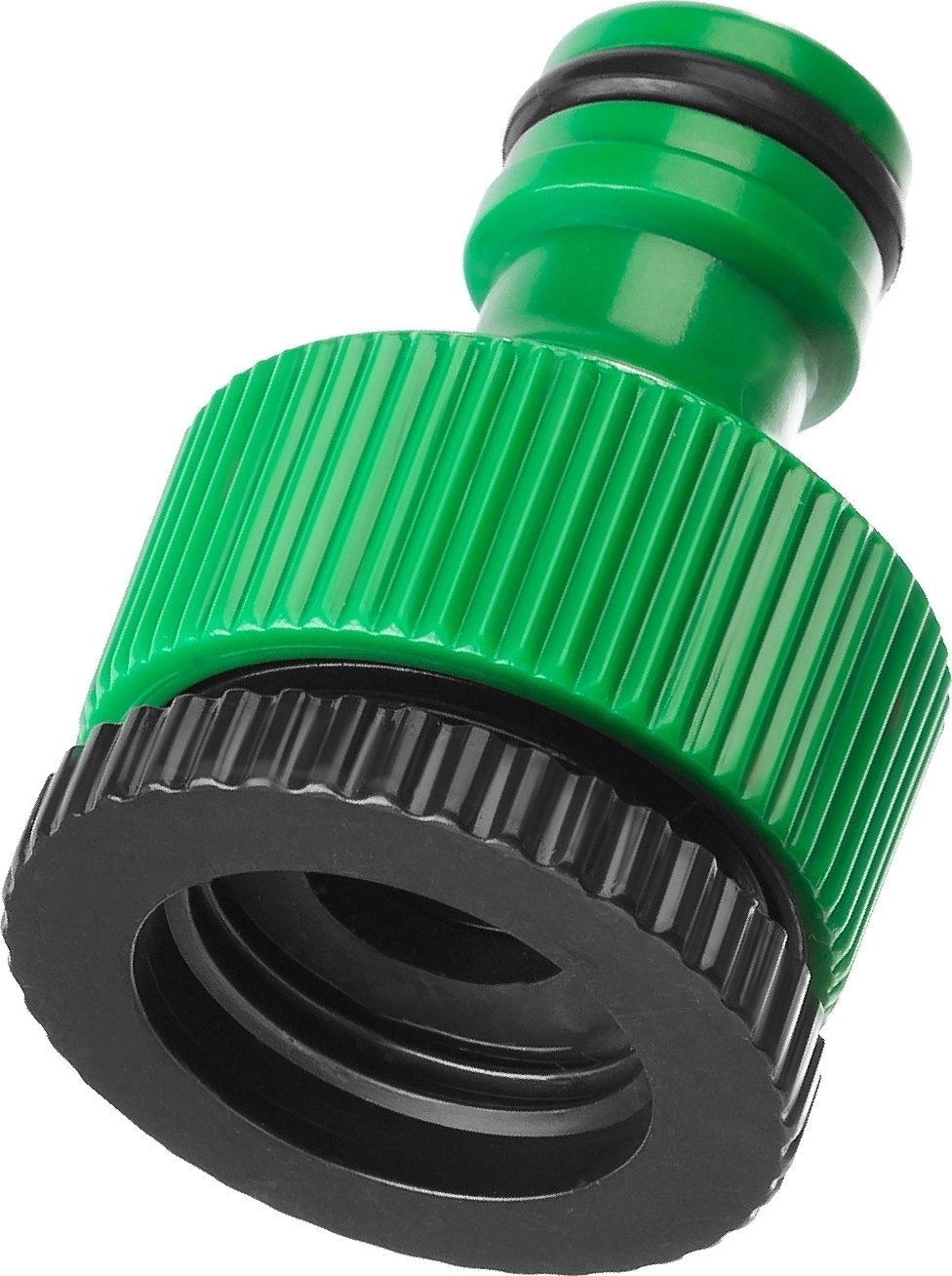 Применяется в качестве переходника между соединителем и водопроводной трубой или краном с внешней резьбой 1/2″ или 3/4″.