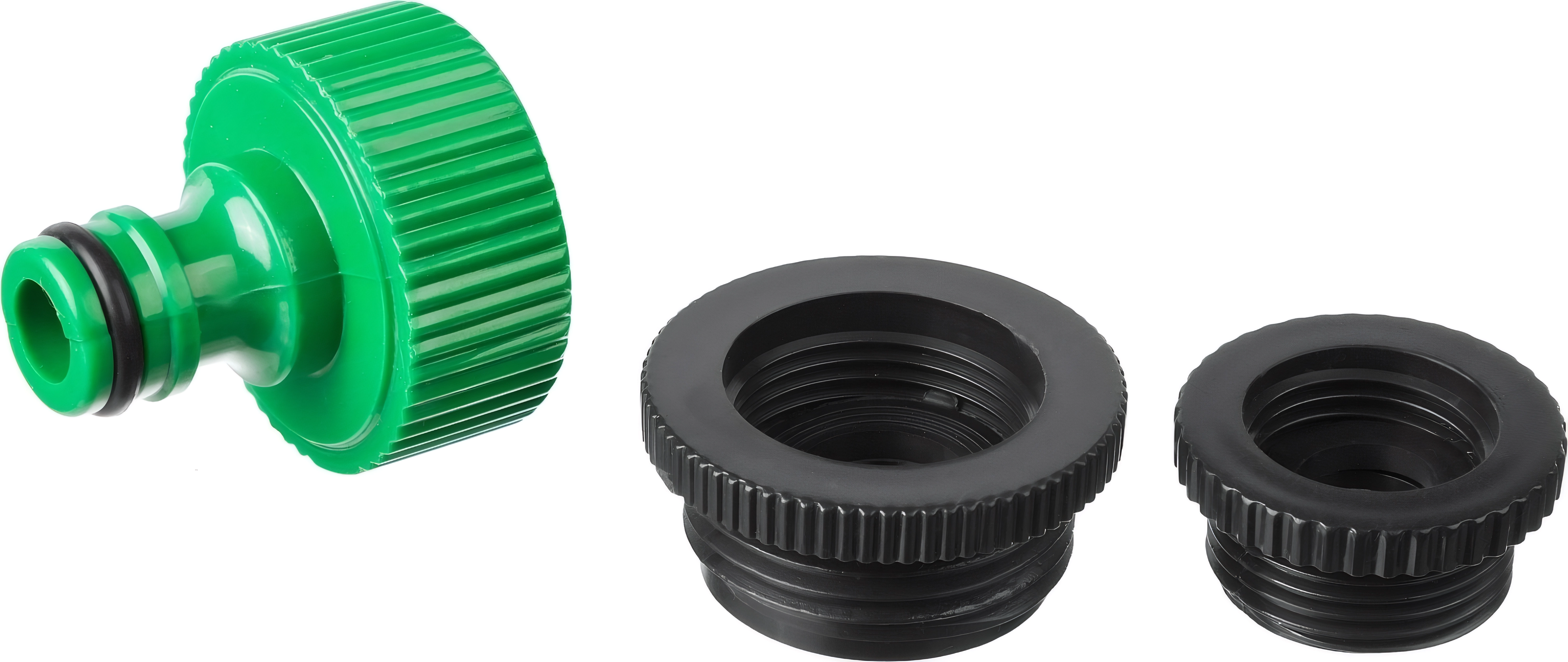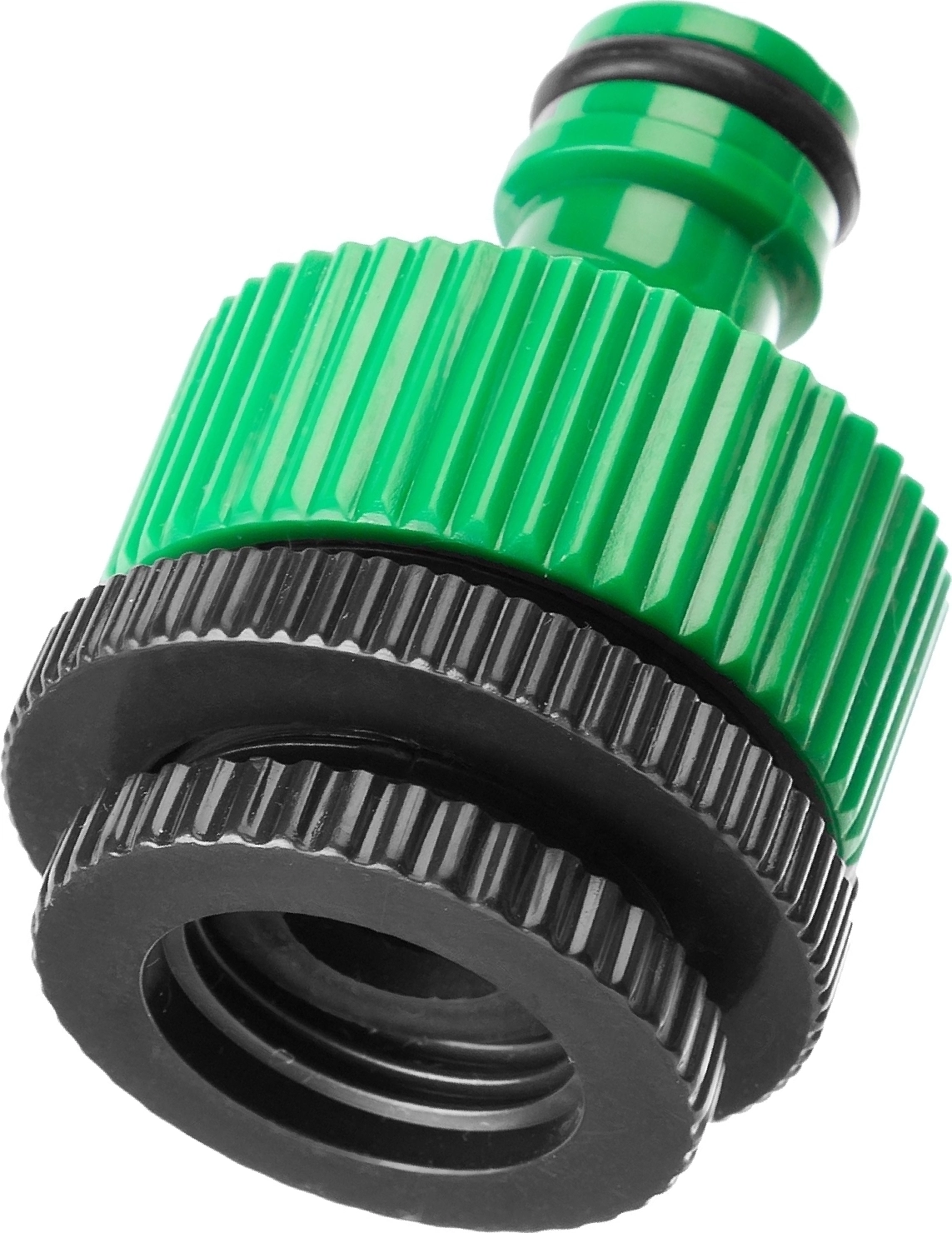 Применяется в качестве переходника между соединителем и водопроводной трубой или краном с внешней резьбой 1/2″, 3/4″ или 1″.