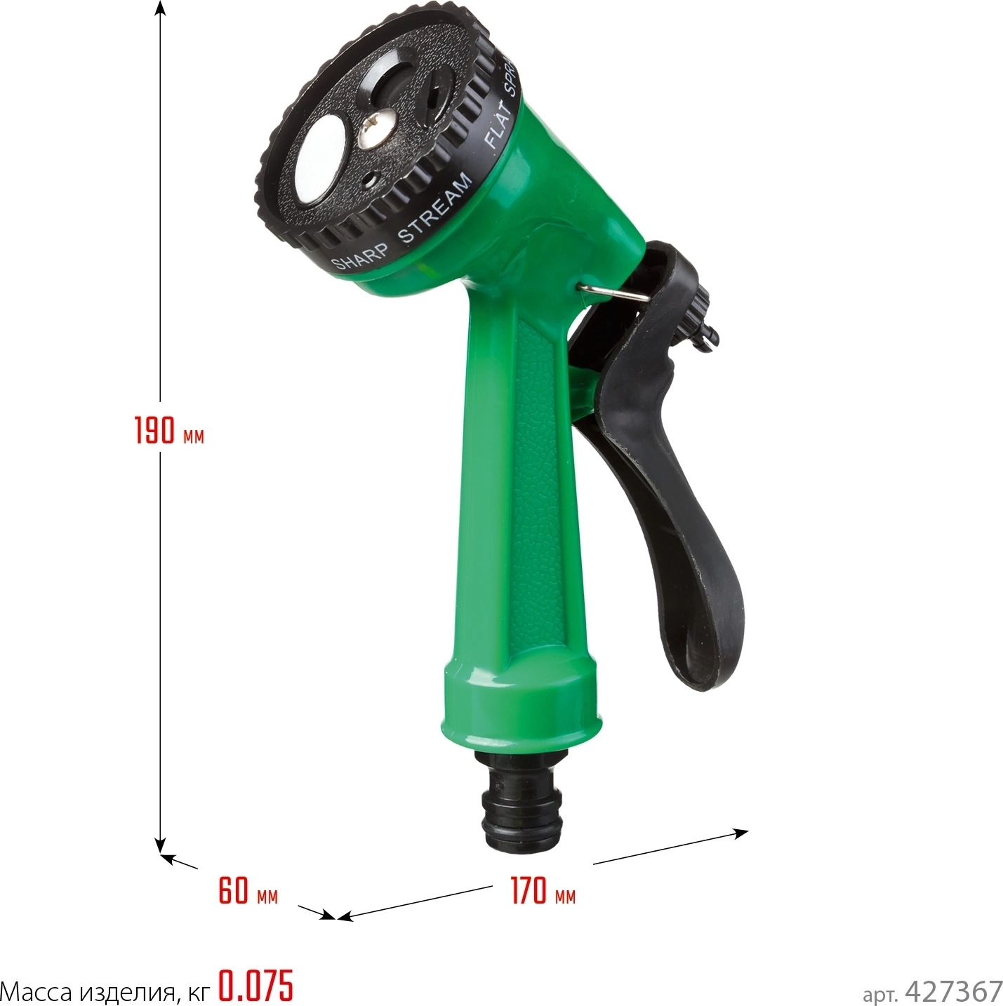 Поливочный пистолет РОСТОК ПР-5, 5 режимов, курок сзади