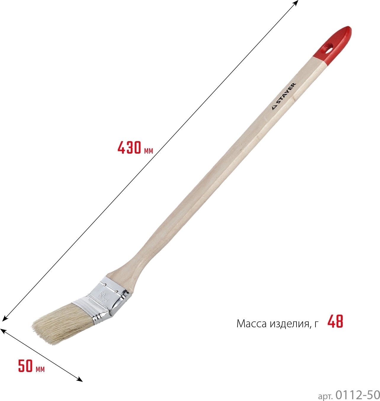 Радиаторная кисть STAYER UNIVERSAL 50 мм 2″ светлая натуральная щетина деревянная ручка все виды ЛКМ 0112-50 - 12 шт