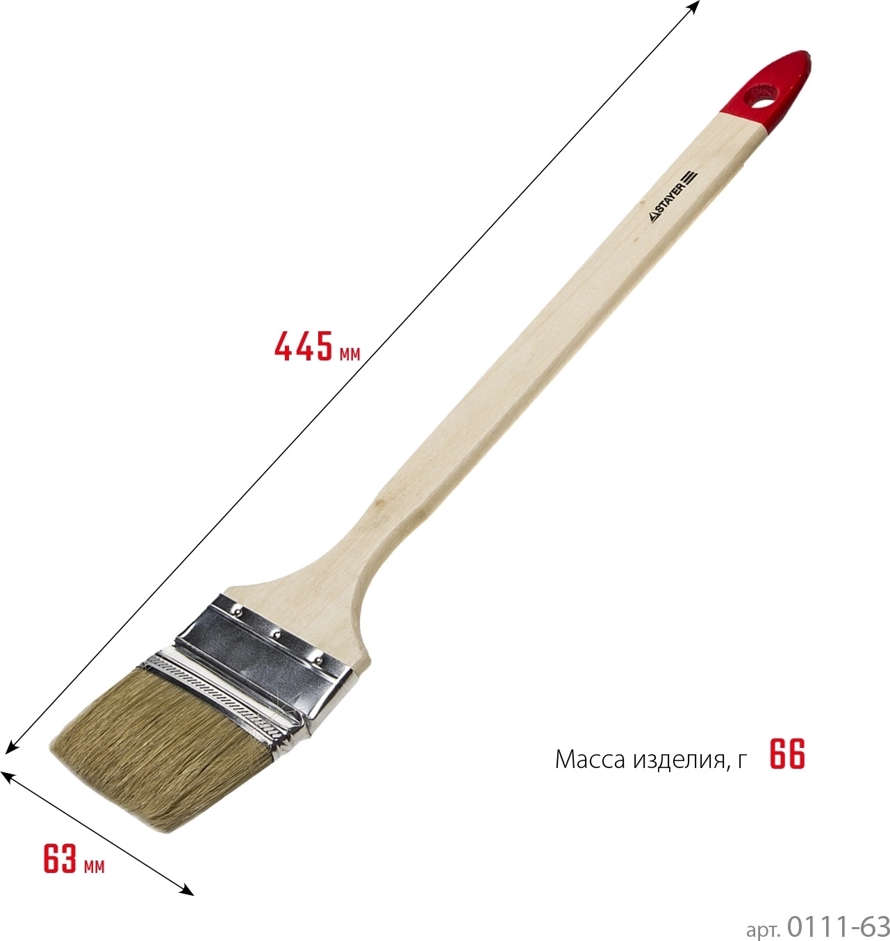 Радиаторная кисть STAYER UNIVERSAL 63 мм 2.5″ светлая натуральная щетина деревянная ручка все виды ЛКМ 0111-63 - 12 шт