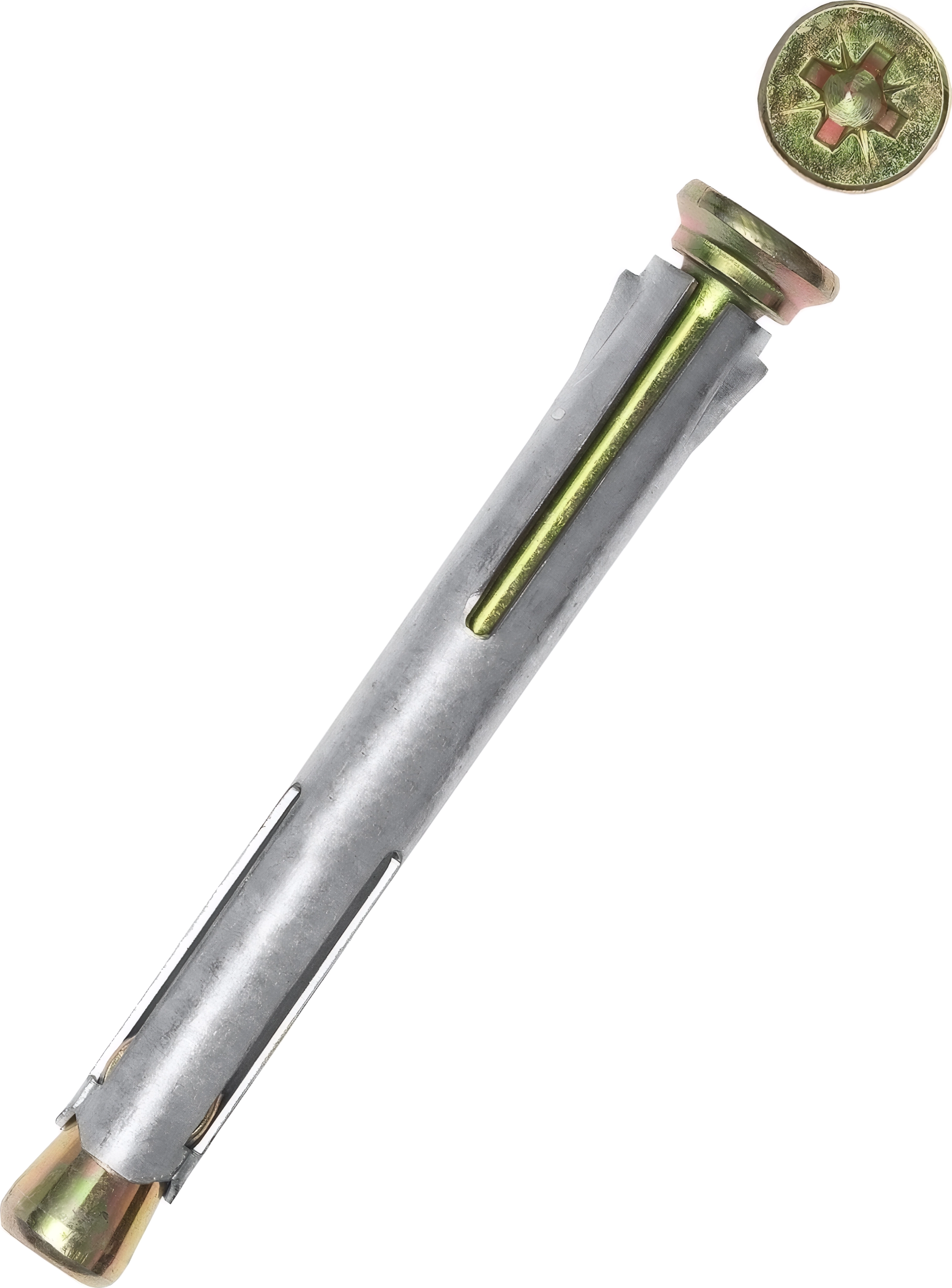 - Анкер расклинивается не только в основании, но и около головки винта, плотно прижимая прикрепляемый материал к основанию