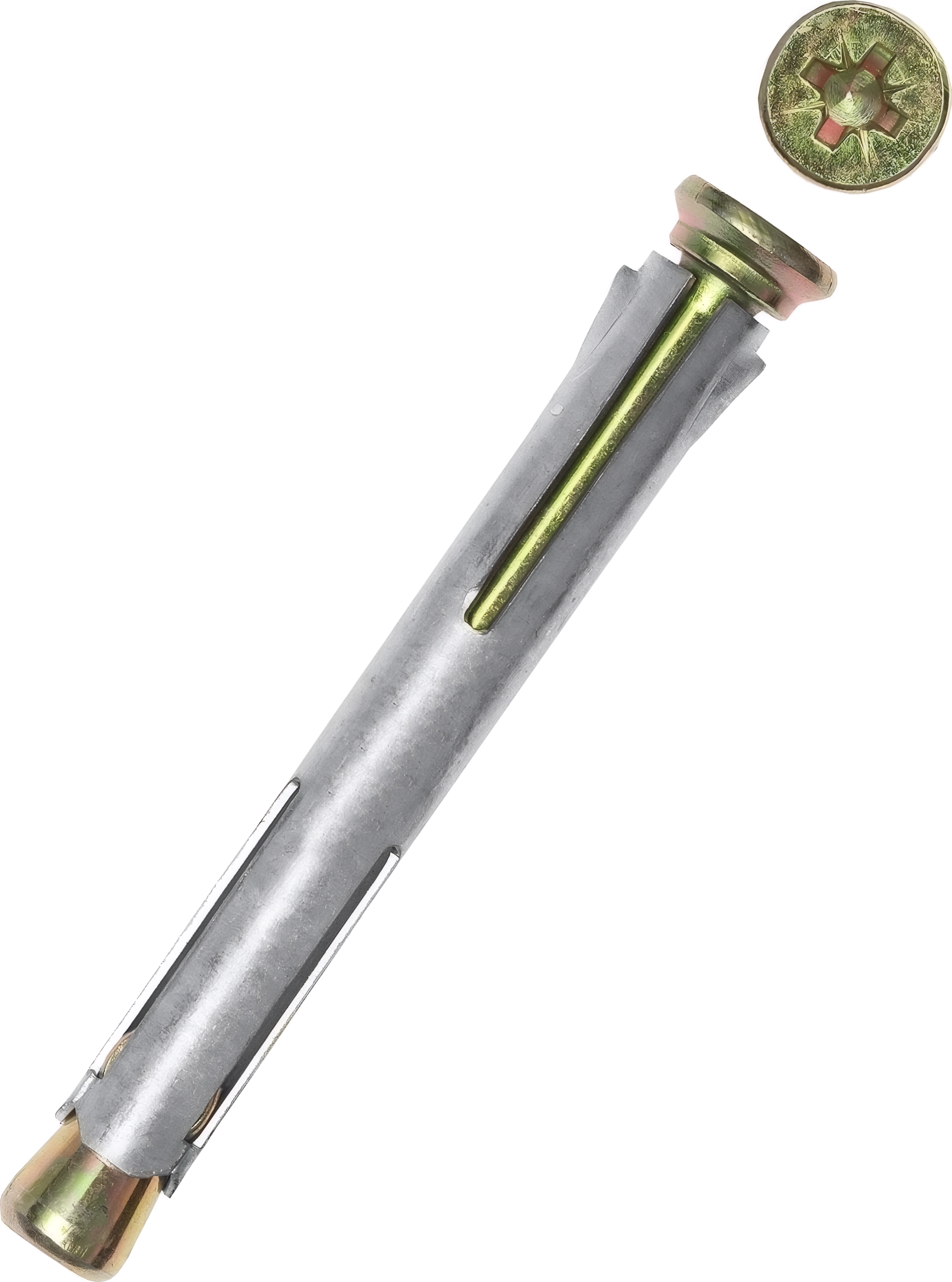 - Анкер расклинивается не только в основании, но и около головки винта, плотно прижимая прикрепляемый материал к основанию