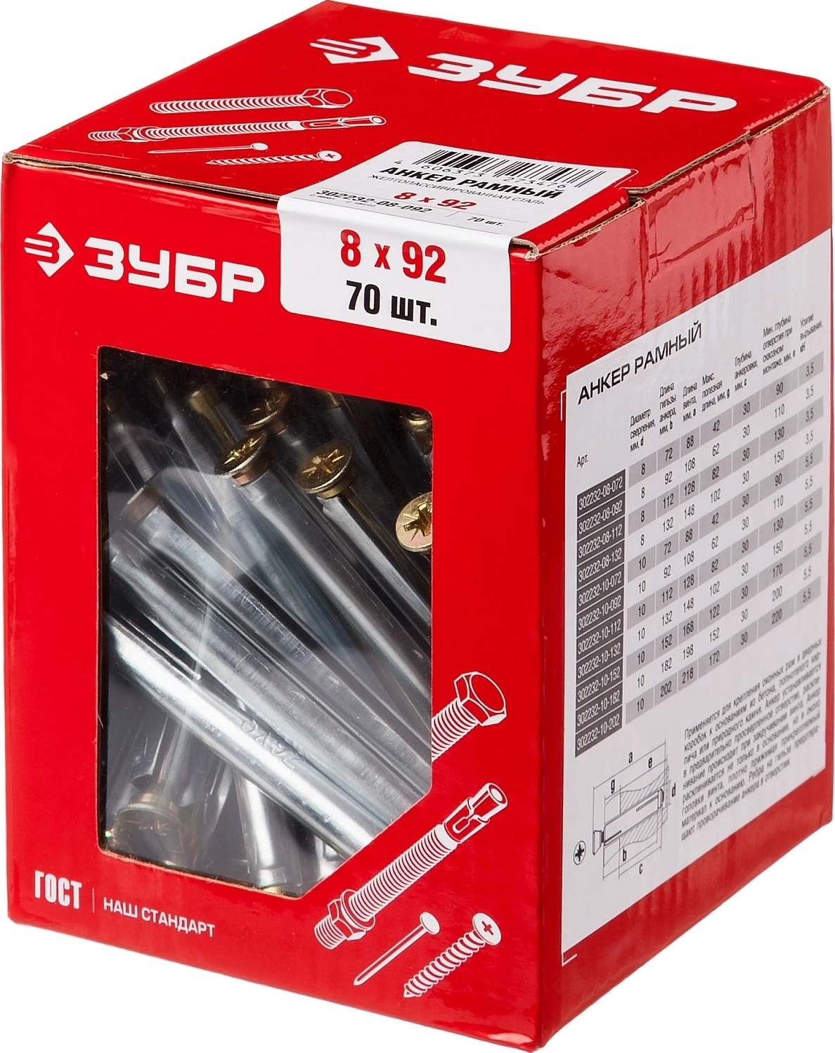 Рамный анкер ЗУБР 8 х 92 мм, 70 шт