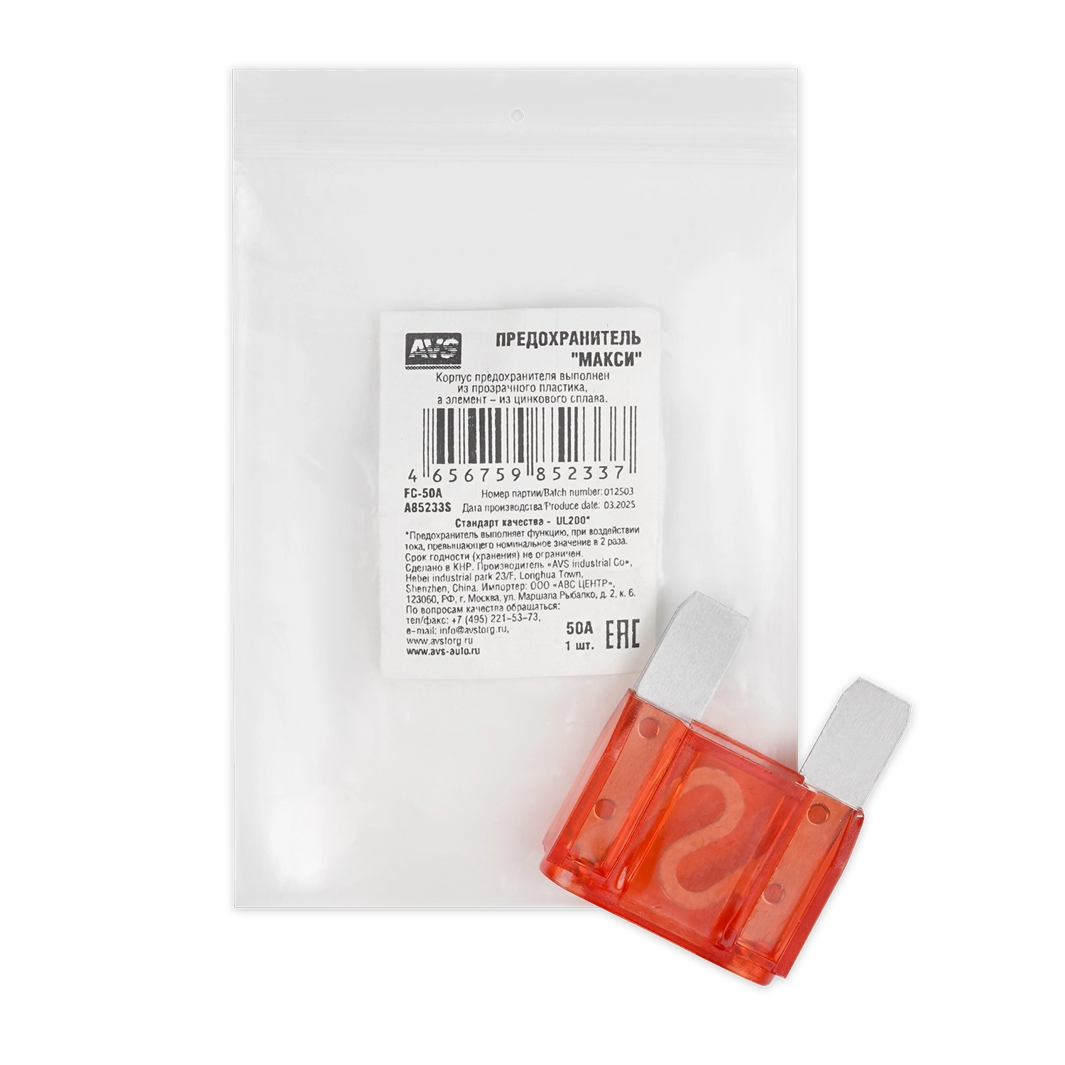 Предохранитель AVS FC-50A "макси" в пакете арт. 75332
