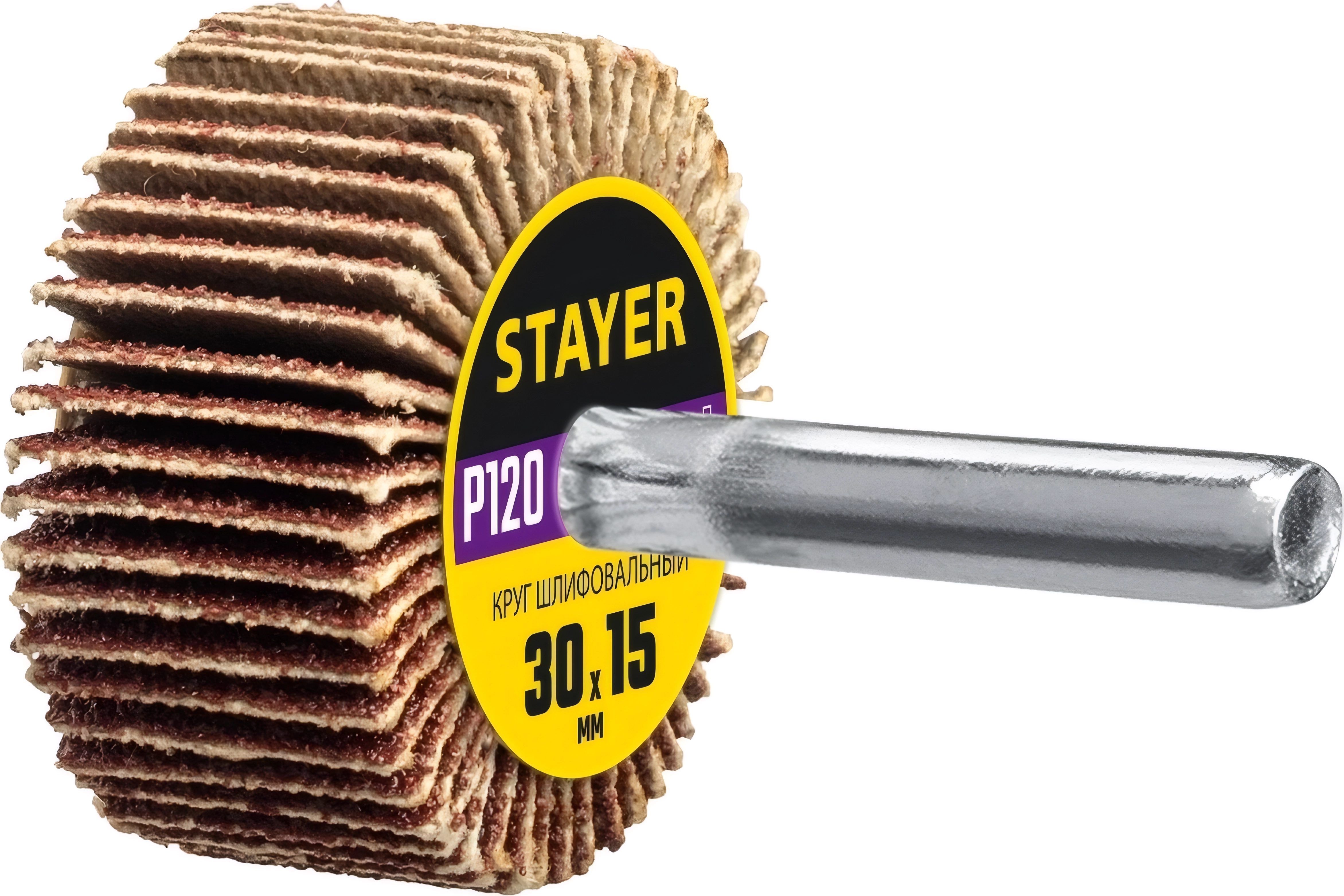 Круг шлифовальный лепестковый d 30 x 15 мм, P120, на шпильке d 6 мм арт. 111287