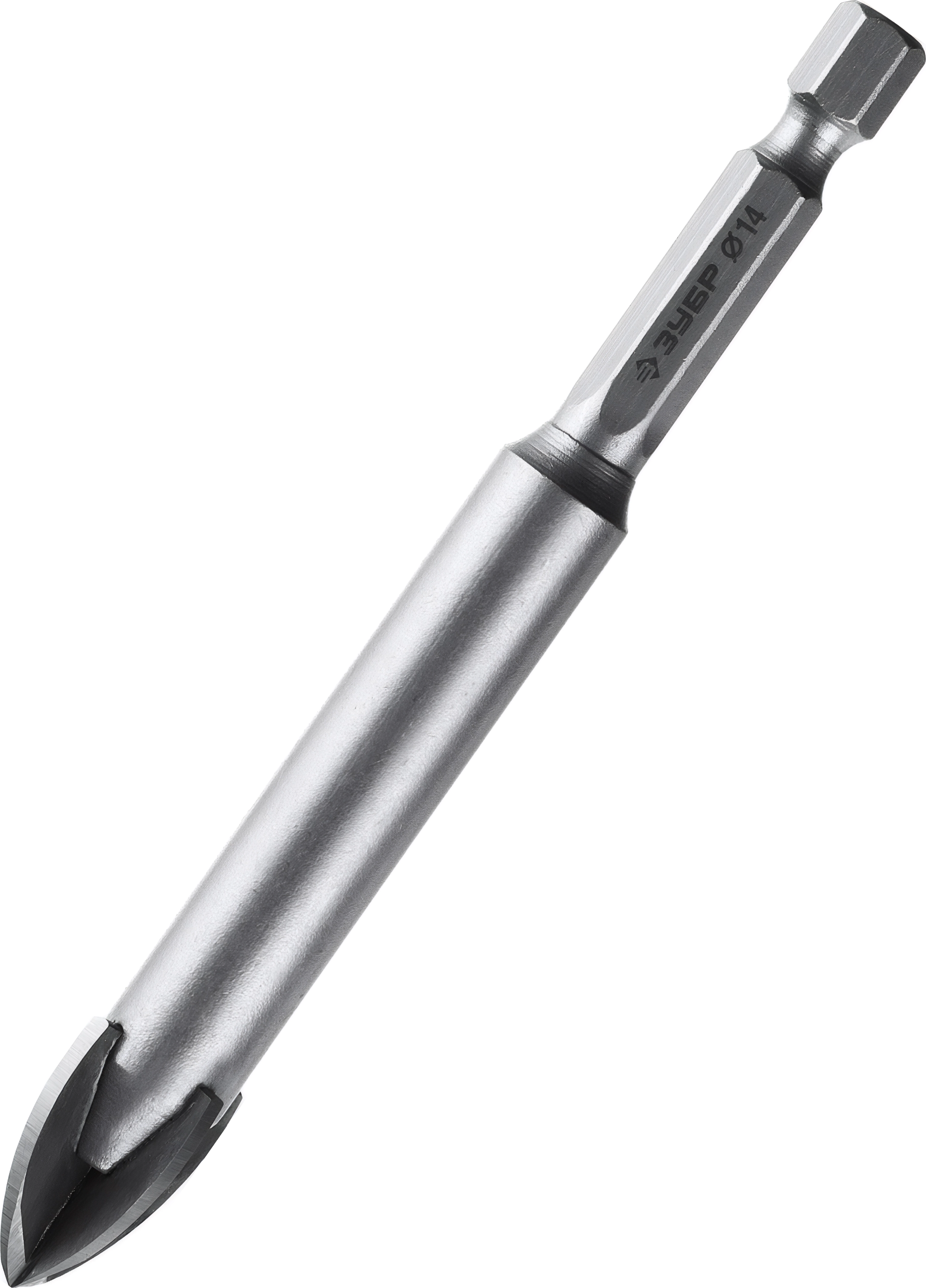 Сверло по стеклу и кафелю 14 мм 4х кромка HEX 1/4 арт. 102470