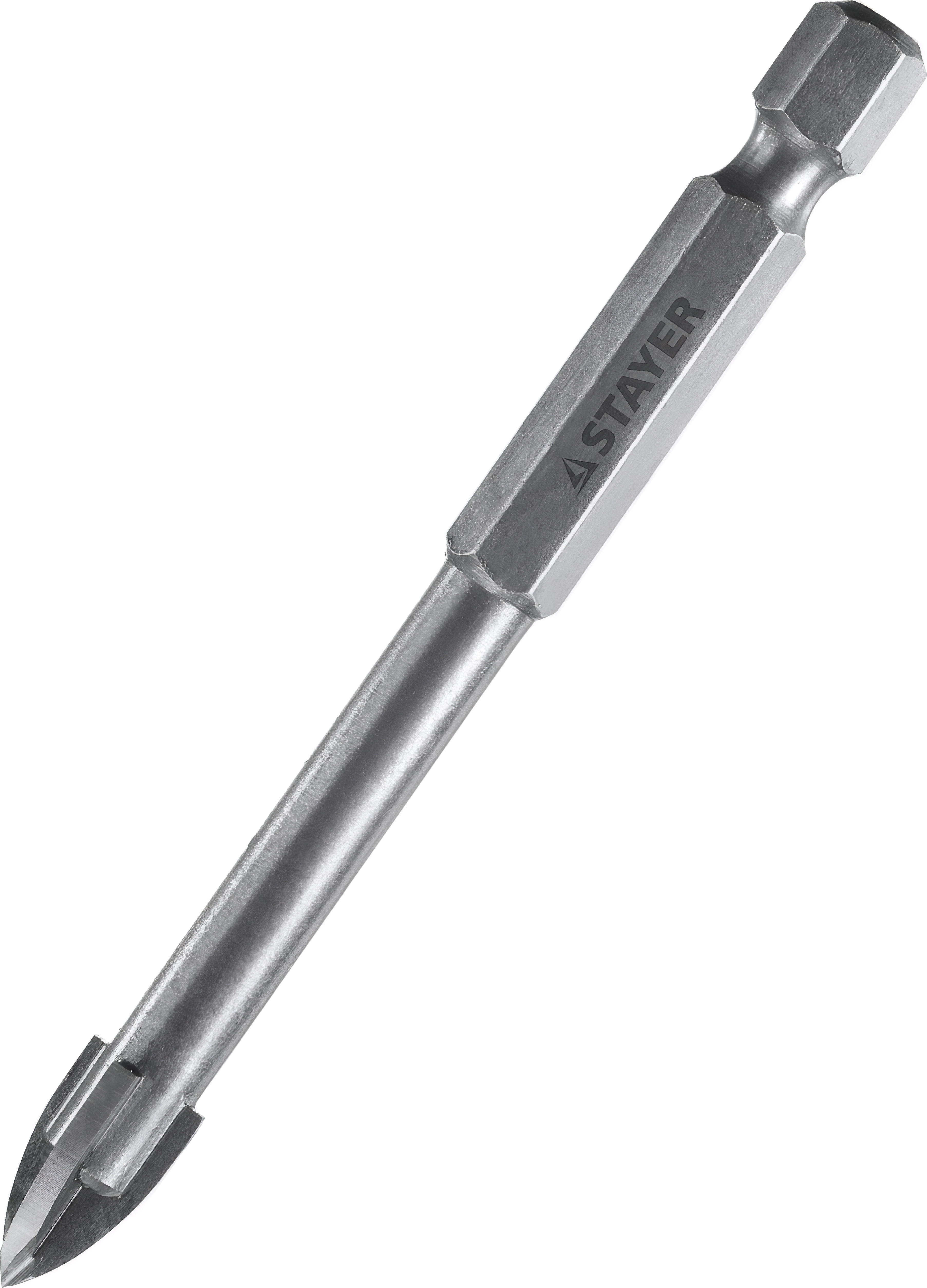 Сверло по стеклу и кафелю 6 мм, 4х кромка, HEX 1/4 арт. 102474
