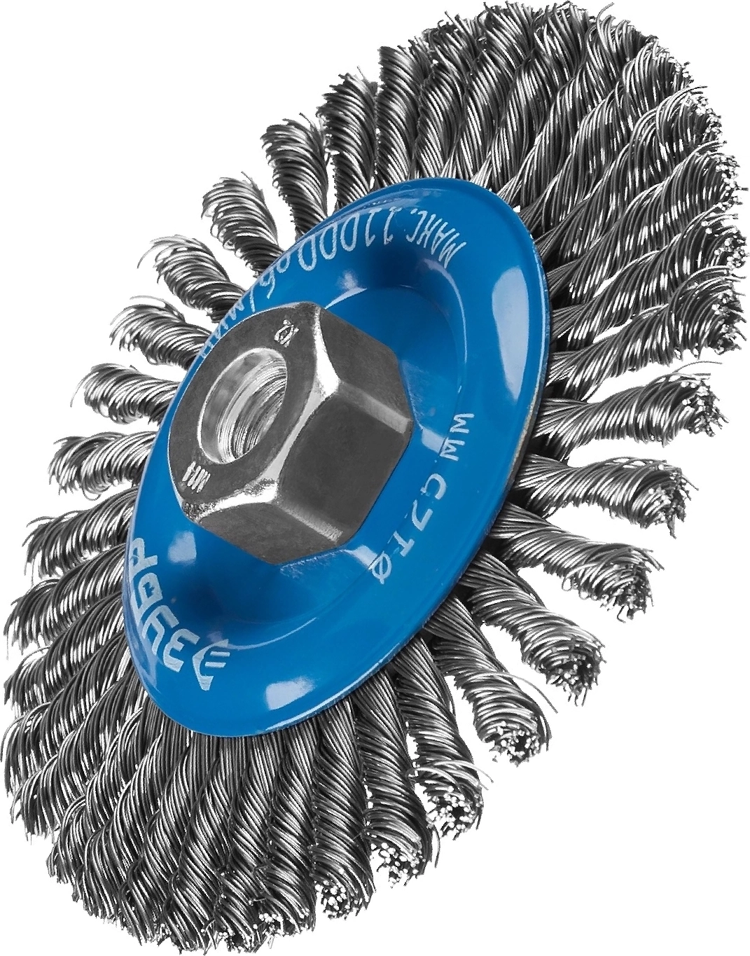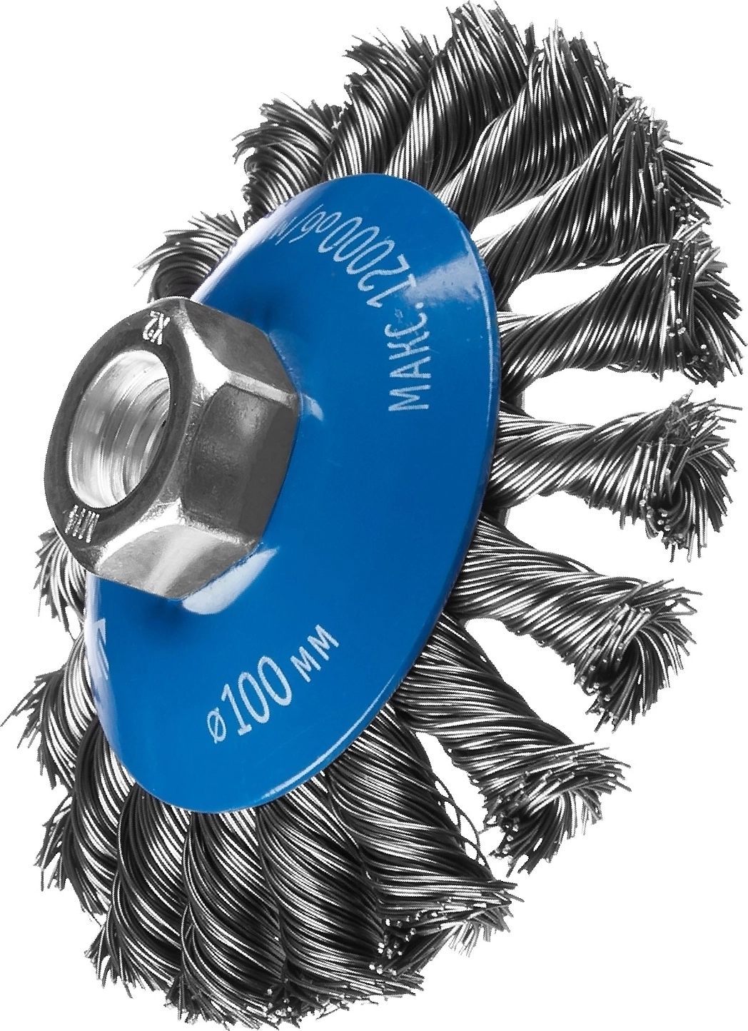Коническая щетка-крацовка для УШМ 100 мм жгутированная стальная проволока 0.5 мм арт. 103255