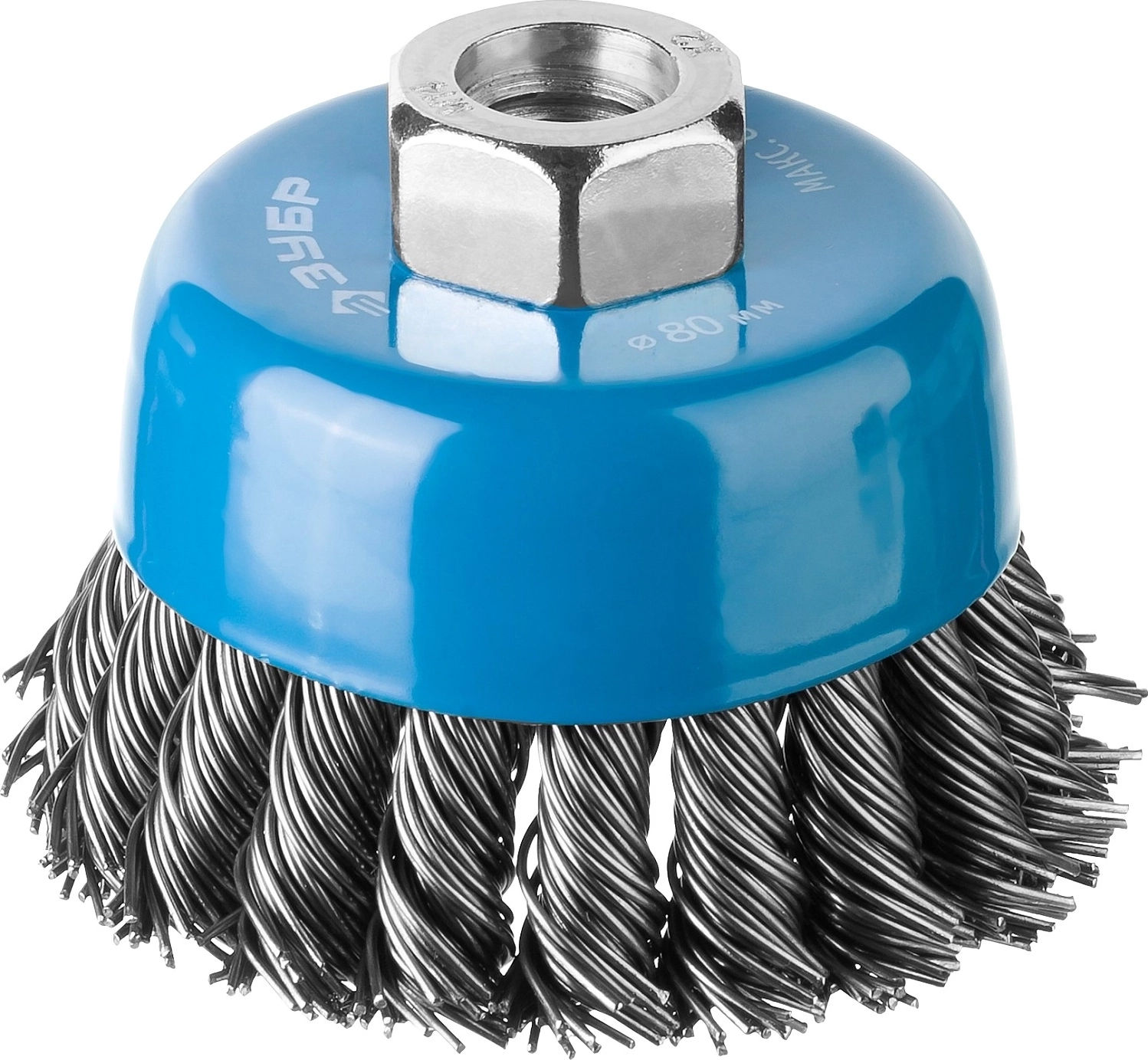 Усиленная чашечная щетка-крацовка для УШМ 80 мм жгутированная стальная проволока 0.5 мм арт. 103258