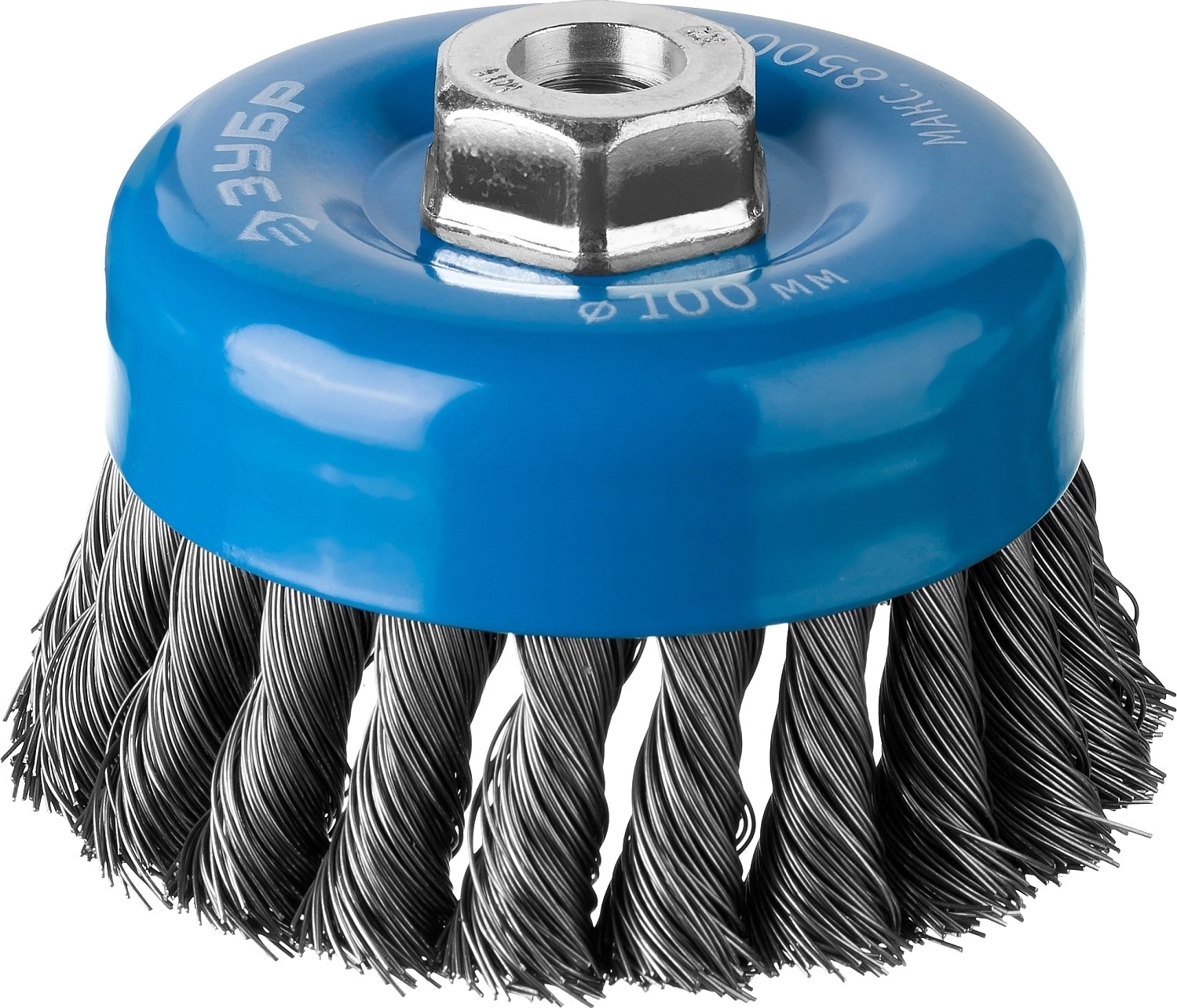 Усиленная чашечная щетка-крацовка для УШМ 100 мм жгутированная стальная проволока 0.5 мм арт. 103259
