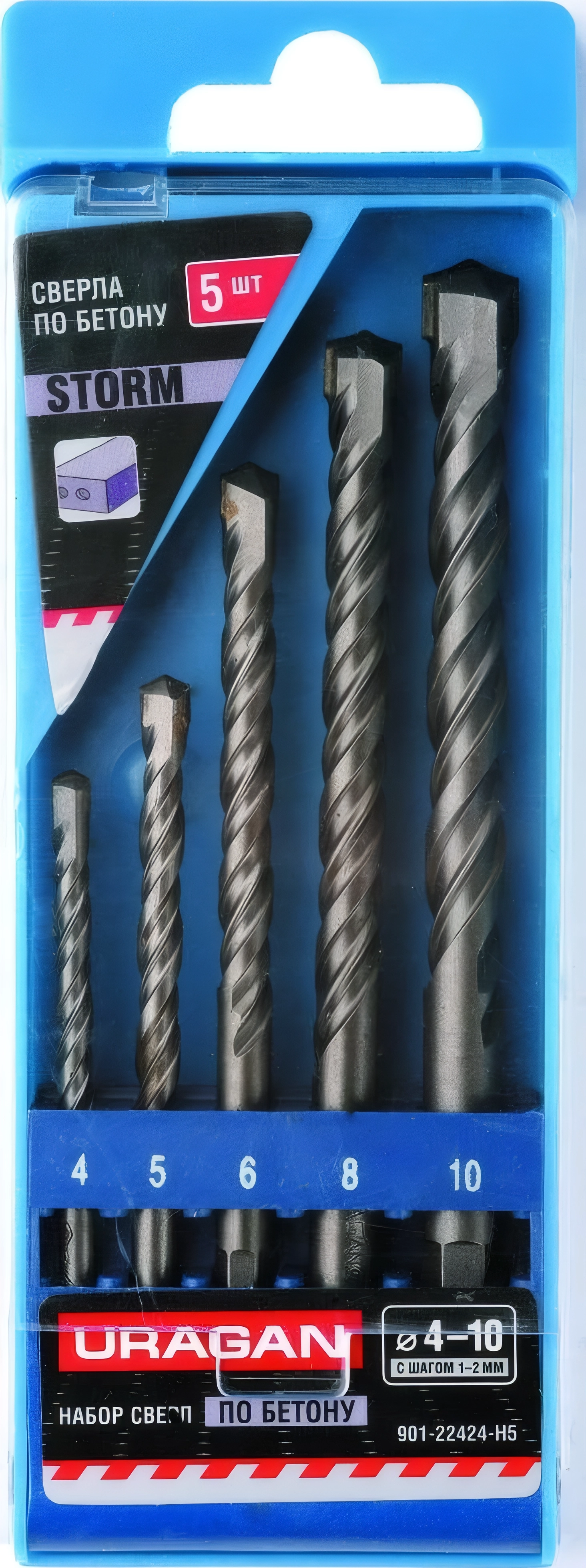 Набор сверл по бетону Storm, 5 шт: d 4-5-6-8-10 мм, шестигранный хвостовик арт. 119908