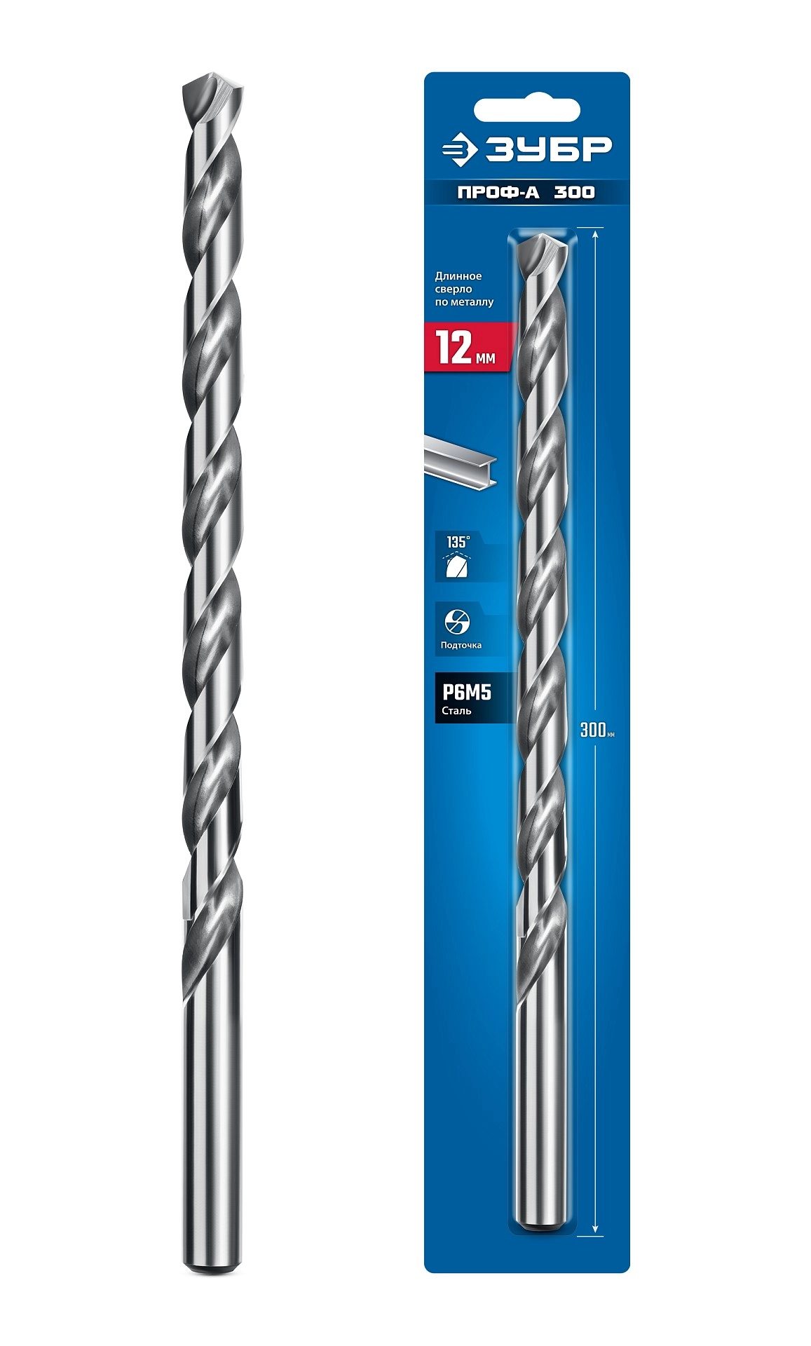 Сверло по металлу ПРОФ-А 300 (12х300 мм, Р6М5), Класс А арт. 120730