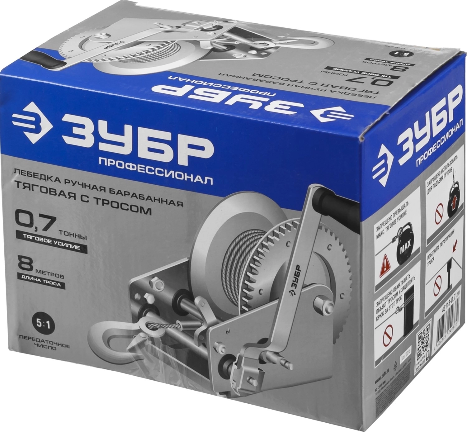 Ручная барабанная тяговая тросовая лебедка ЗУБР 0.7 т 8 м