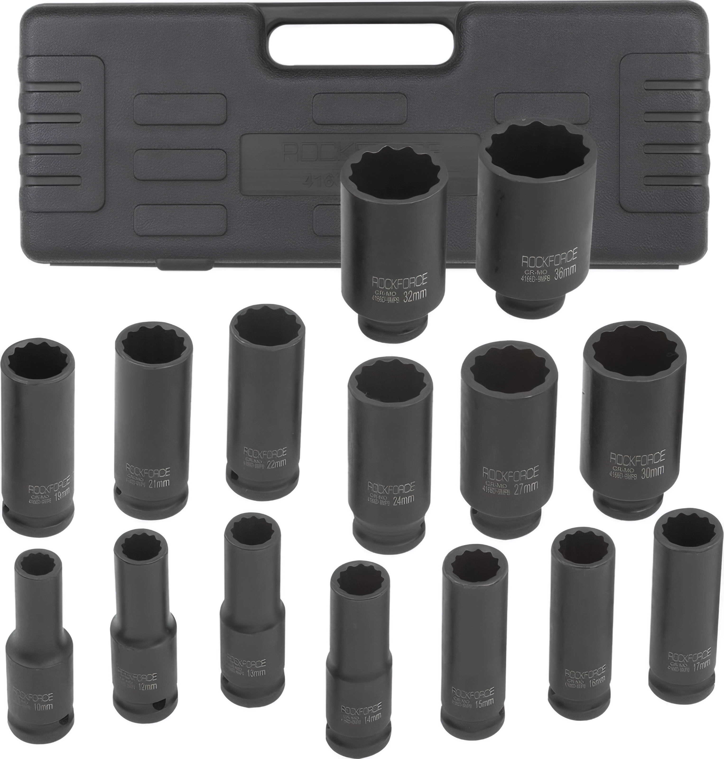 Набор головок ударных глубоких , 1/2"DR, 10-36мм, 12гр, 15 предм. арт. 121530