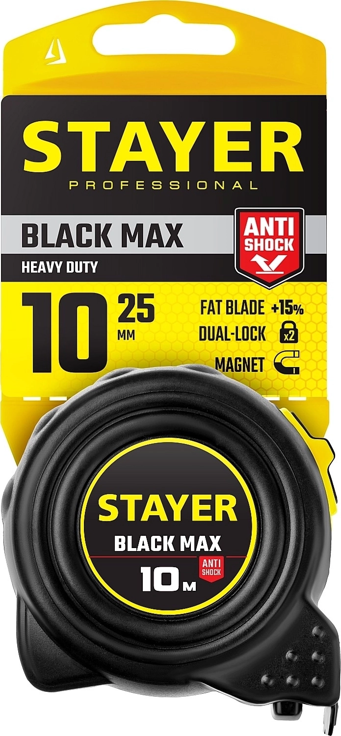 Рулетка с двумя фиксаторами Professional (3410-010) STAYER BlackMax 10 м х 25 мм