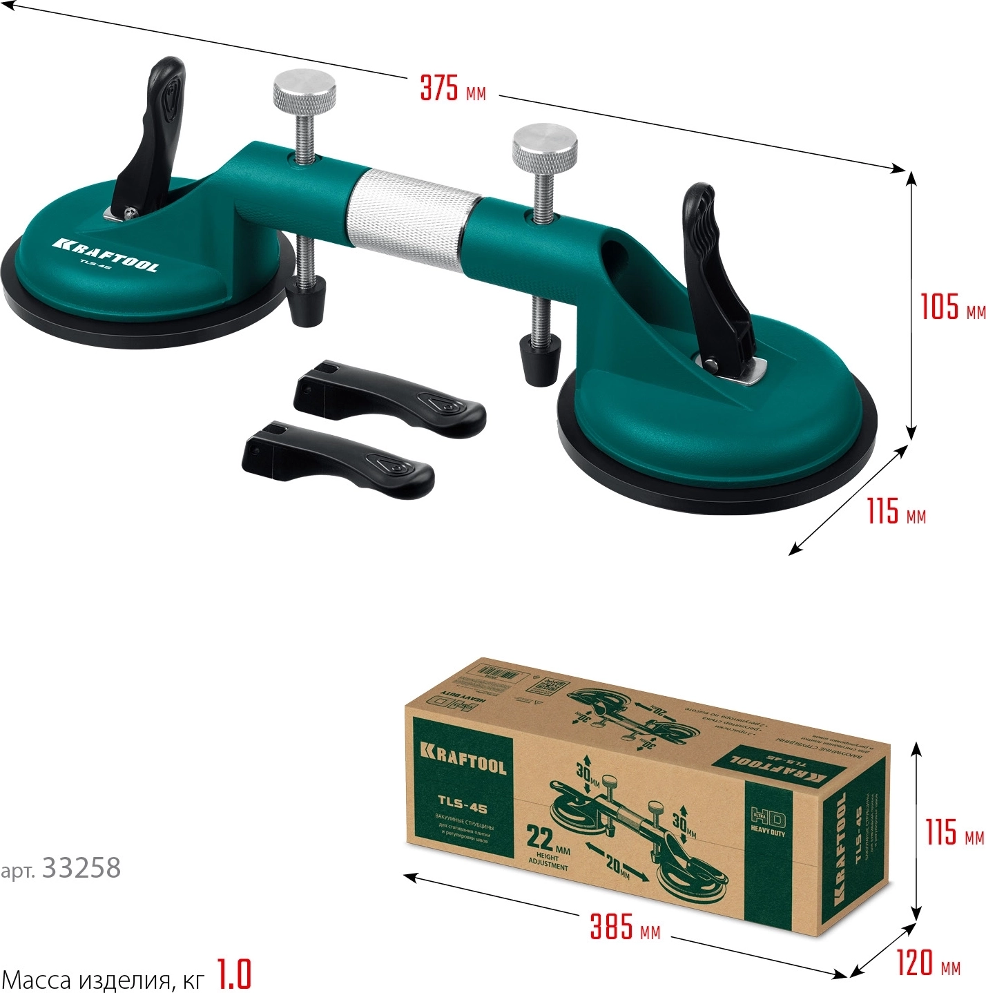 Рычажная присоска для стягивания плит и регулировки шва KRAFTOOL TLS-45
