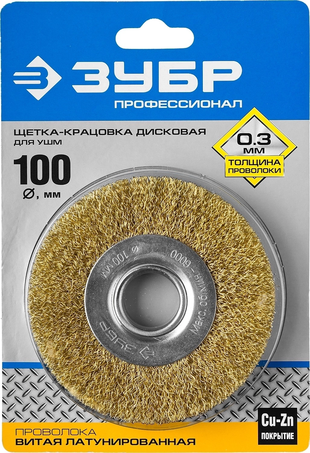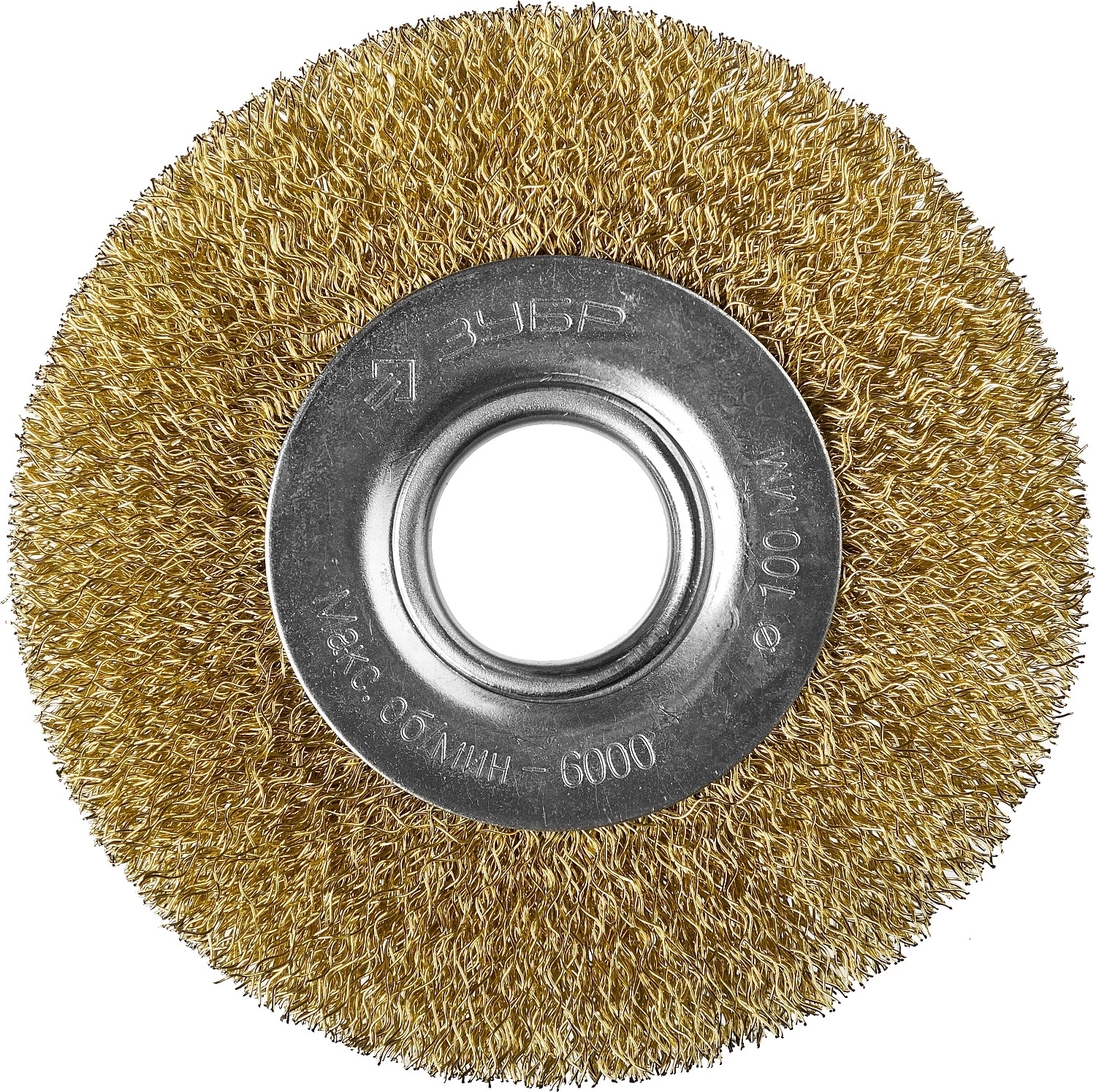 Щетка дисковая для УШМ ЗУБР 100 мм витая стальная латунированная проволока 0.3 мм