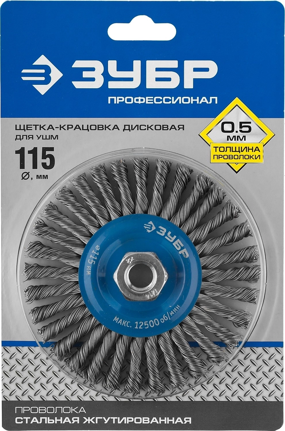 Щетка дисковая для УШМ ЗУБР 115 мм жгутированная стальная проволока 0.5 мм