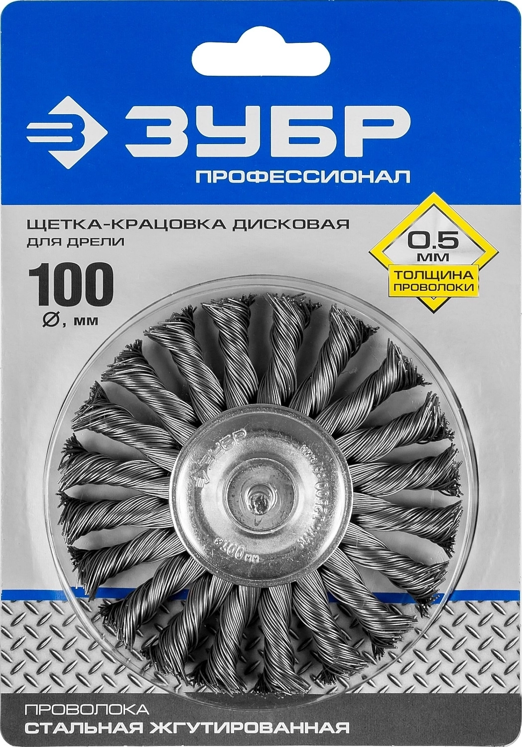 Щетка дисковая для дрели ЗУБР 100 мм жгутированная стальная проволока 0.5 мм