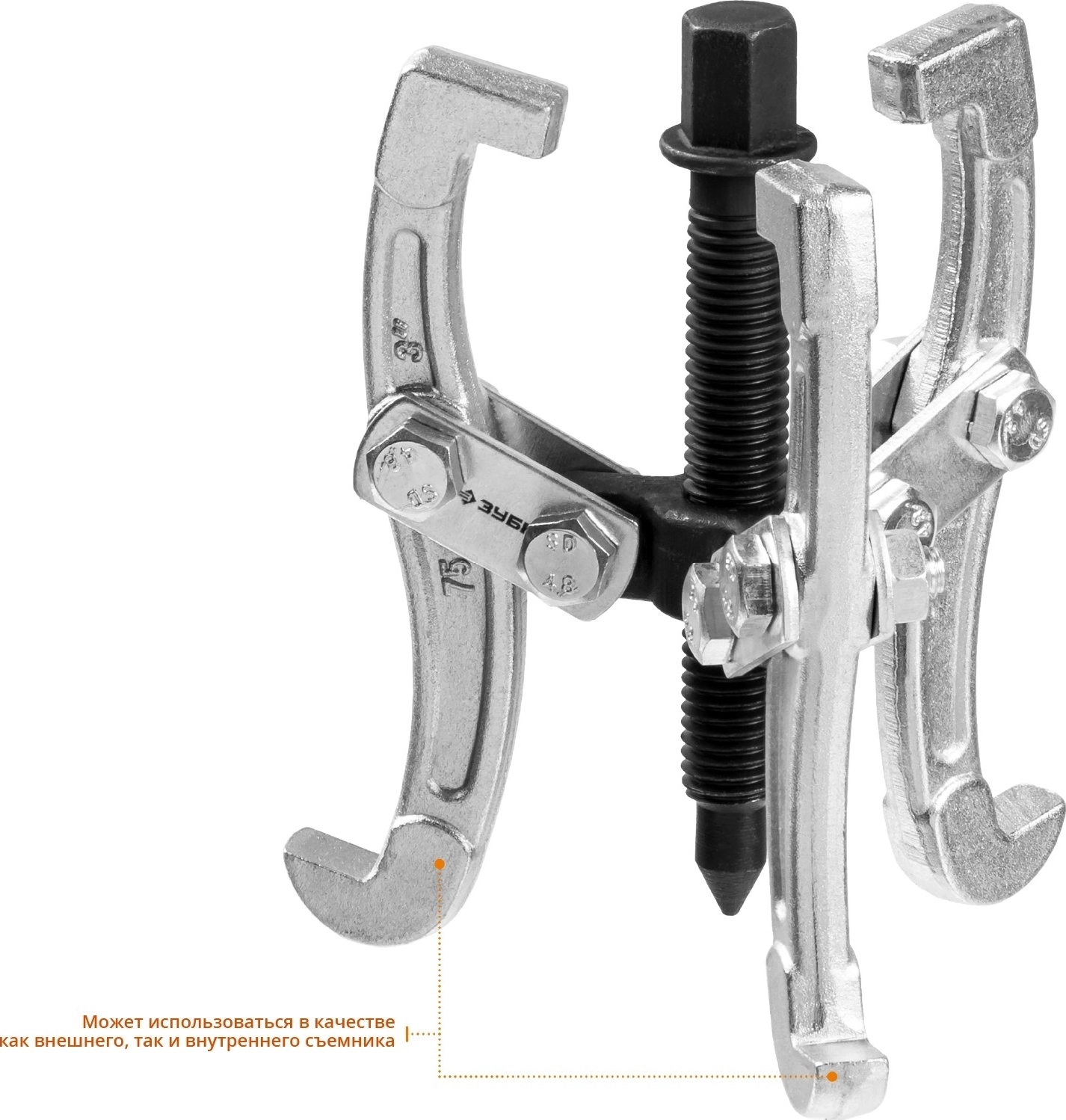 Шарнирный трехзахватный съемник ЗУБР внешний d 15 - 80 мм внутренний d 35 - 60 мм