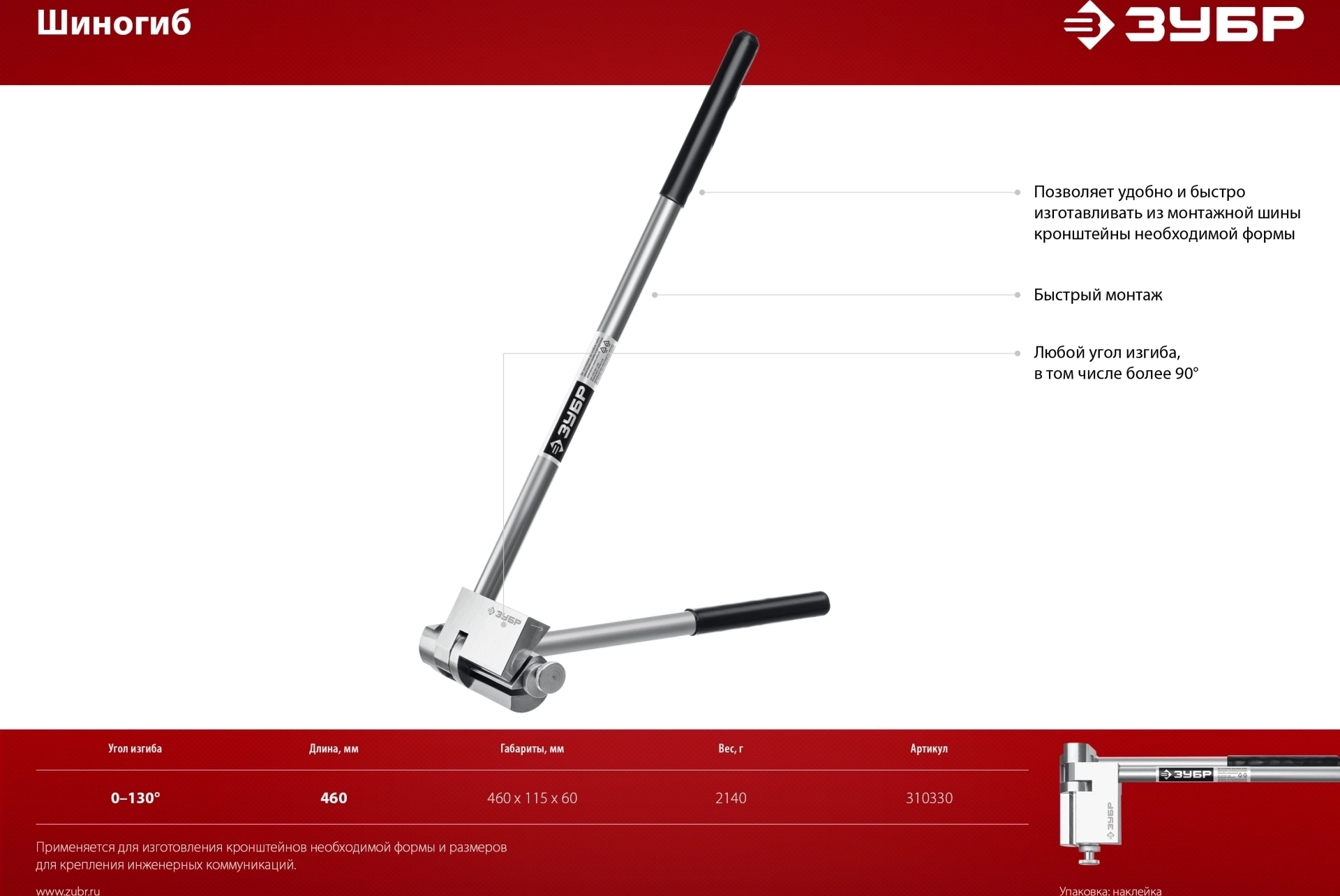 Шиногиб позволяет удобно и быстро изготавливать из монтажной шины кронштейны необходимой формы для крепления инженерных коммуникаций. Крепление с помощью монтажной шины упрощает и ускоряет монтаж, позволяя избежать сверления большого количества отверстий.